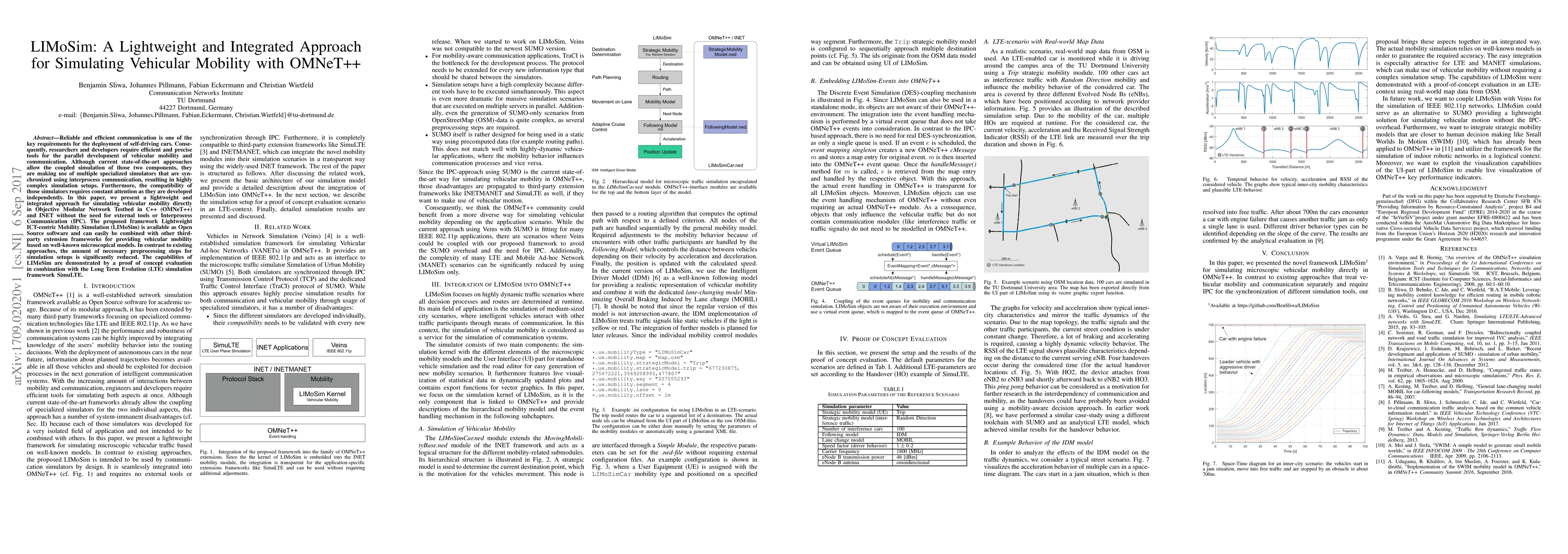 LIMoSim is a lightweight integrated simulation framework for vehicular mobility within OMNeT++ and INET, eliminating the need for external tools or IPC. This approach simplifies setup and reduces preprocessing steps compared to existing complex, multi-simulator systems.