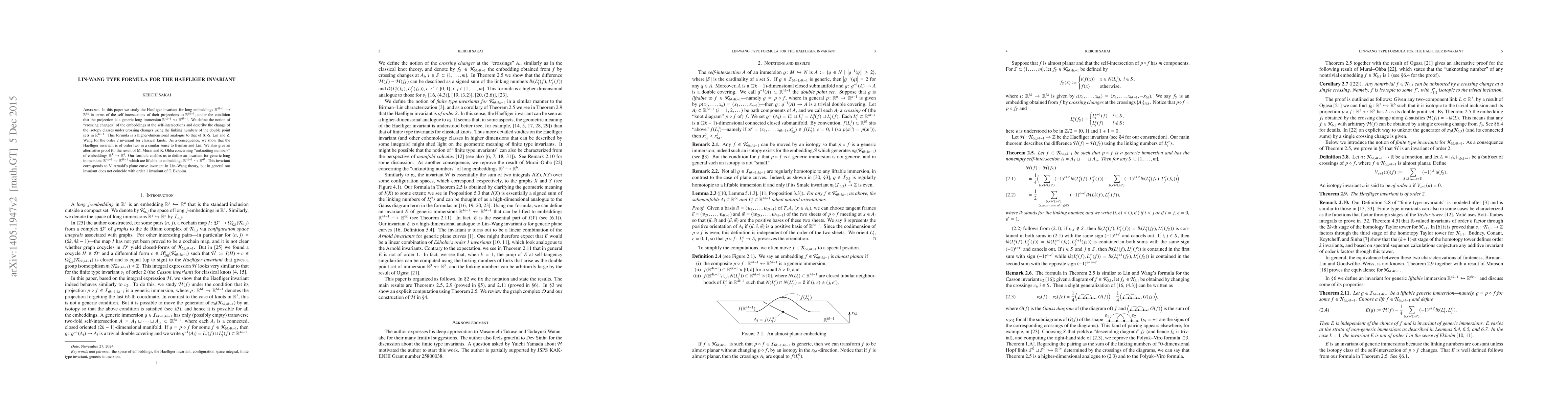 In this paper we study the Haefliger invariant for long embeddings $\mathbb{R}^{4k-1}\hookrightarrow\mathbb{R}^{6k}$ in terms of the self-intersections of their projections to $\mathbb{R}^{6k-1}$, under the condition that the projection is a generic long immersion $\mathbb{R}^{4k-1}\looparrowright\mathbb{R}^{6k-1}$. We define the notion of "crossing changes" of the embeddings at the self-intersections and describe the change of the isotopy classes under crossing changes using the linking numbers of the double point sets in $\mathbb{R}^{4k-1}$. This formula is a higher-dimensional analogue to that of X.-S. Lin and Z. Wang for the order $2$ invariant for classical knots. As a consequence, we show that the Haefliger invariant is of order two in a similar sense to Birman and Lin. We also give an alternative proof for the result of M. Murai and K. Ohba concerning "unknotting numbers" of embeddings $\mathbb{R}^3\hookrightarrow\mathbb{R}^6$. Our formula enables us to define an invariant for generic long immersions $\mathbb{R}^{4k-1}\looparrowright\mathbb{R}^{6k-1}$ which are liftable to embeddings $\mathbb{R}^{4k-1}\hookrightarrow\mathbb{R}^{6k}$. This invariant corresponds to V. Arnold's plane curve invariant in Lin-Wang theory, but in general our invariant does not coincide with order $1$ invariant of T. Ekholm.