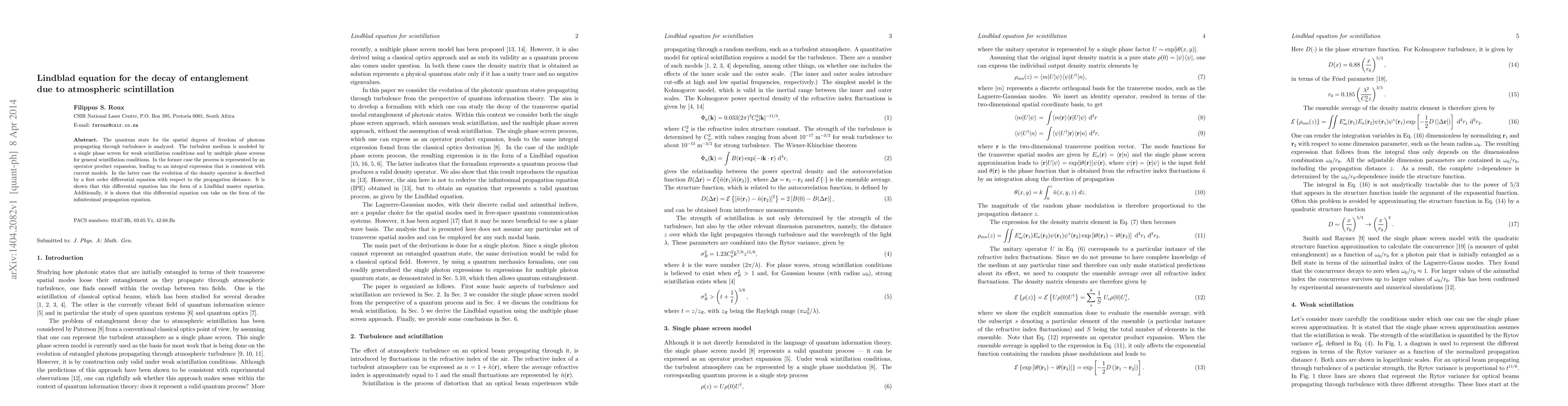 Researchers developed a mathematical model to describe how atmospheric scintillation affects the entanglement of photons propagating through turbulent air, finding that it follows a Lindblad master equation for general conditions.