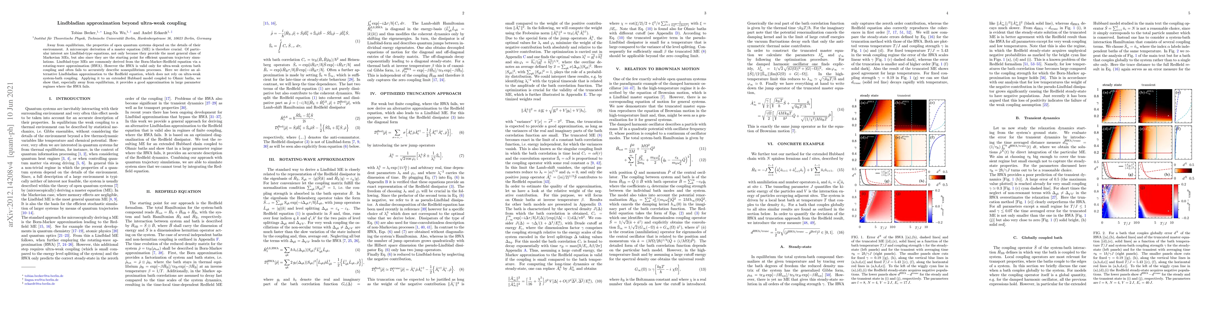 Away from equilibrium, the properties of open quantum systems depend on the details of their environment. A microscopic derivation of a master equation (ME) is therefore crucial. Of particular interest are Lindblad-type equations, not only because they provide the most general class of Markovian MEs, but also since they are the starting point for efficient quantum trajectory simulations. Lindblad-type MEs are commonly derived from the Born-Markov-Redfield equation via a rotating-wave approximation (RWA). However the RWA is valid only for ultra-weak system bath coupling and often fails to accurately describe nonequilibrium processes. Here we derive an alternative Lindbladian approximation to the Redfield equation, which does not rely on ultra-weak system-bath coupling. Applying it to an extended Hubbard model coupled to Ohmic baths, we show that, especially away from equilibrium, it provides a good approximation in large parameter regimes where the RWA fails.