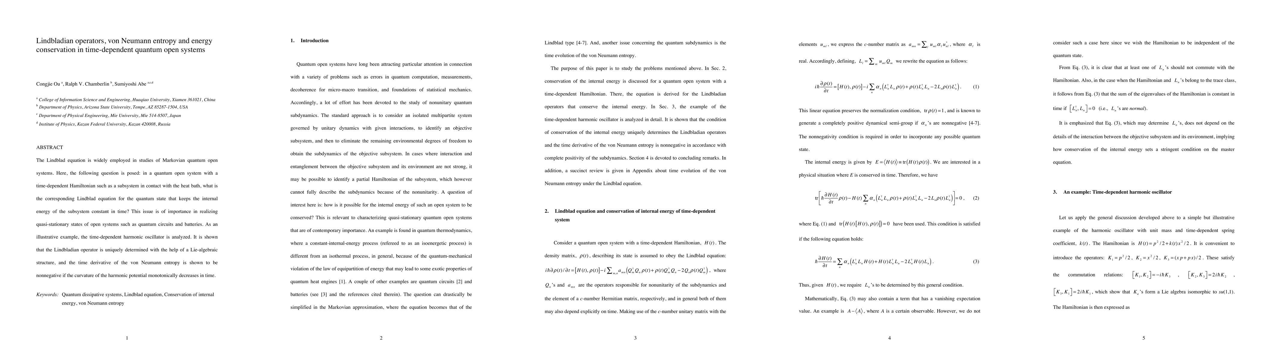 This paper explores the time evolution of von Neumann entropy in quantum open systems governed by the Lindblad equation, and investigates the construction of a corresponding Lindblad equation that maintains constant energy in time-dependent systems. The study concludes with a detailed analysis of the time-dependent harmonic oscillator to demonstrate these principles.