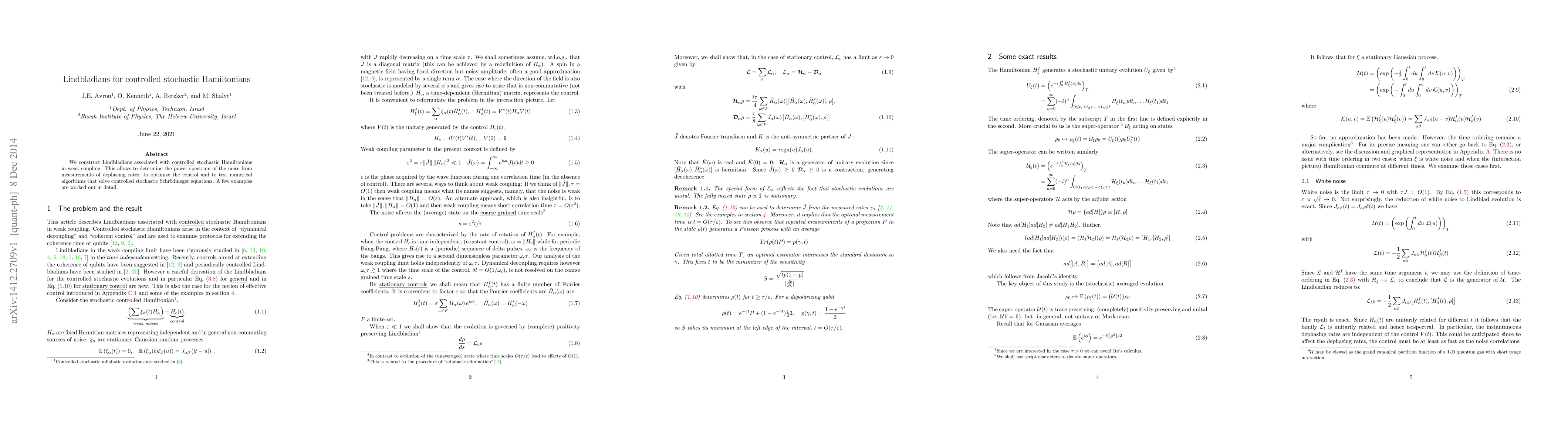 We construct Lindbladians associated with controlled stochastic Hamiltonians in weak coupling. This allows to determine the power spectrum of the noise from measurements of dephasing rates; to optimize the control and to test numerical algorithms that solve controlled stochastic Schrodinger equations. A few examples are worked out in detail.