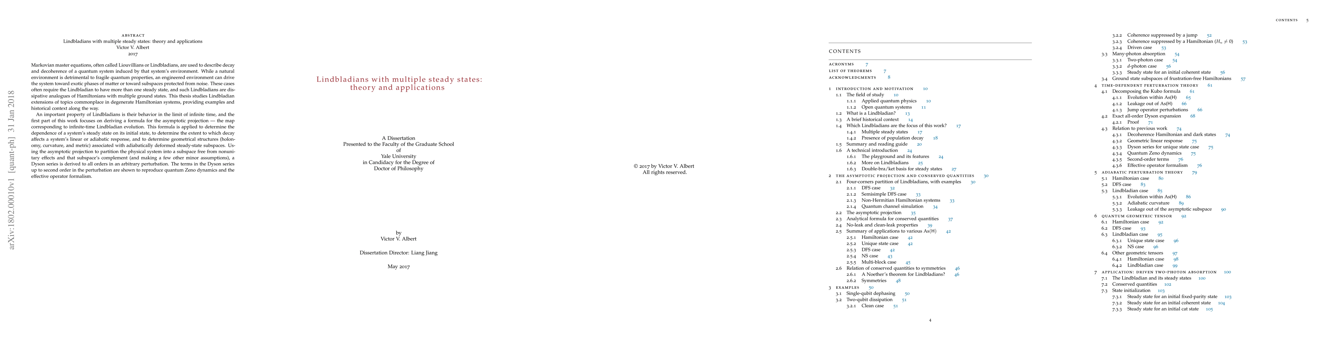 This paper explores Markovian master equations, or Lindbladians, with multiple steady states, focusing on their role in quantum systems' decay and decoherence. It examines how engineered environments can lead to exotic quantum phases and protected subspaces, providing theoretical extensions and applications of these concepts.