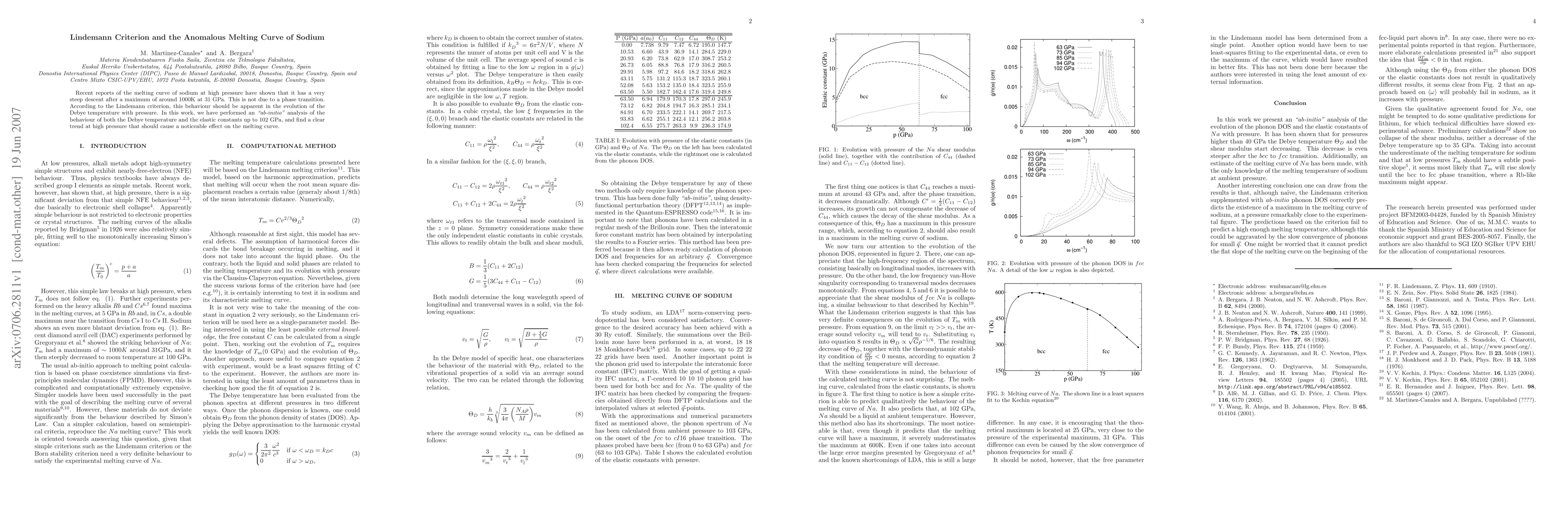 This study investigates the anomalous steep descent in sodium's melting curve at high pressure, revealing it is not due to a phase transition. Using "ab-initio" analysis, the research finds a clear trend in the evolution of Debye temperature and elastic constants, supporting the Lindemann criterion's explanation for the observed melting curve behavior.