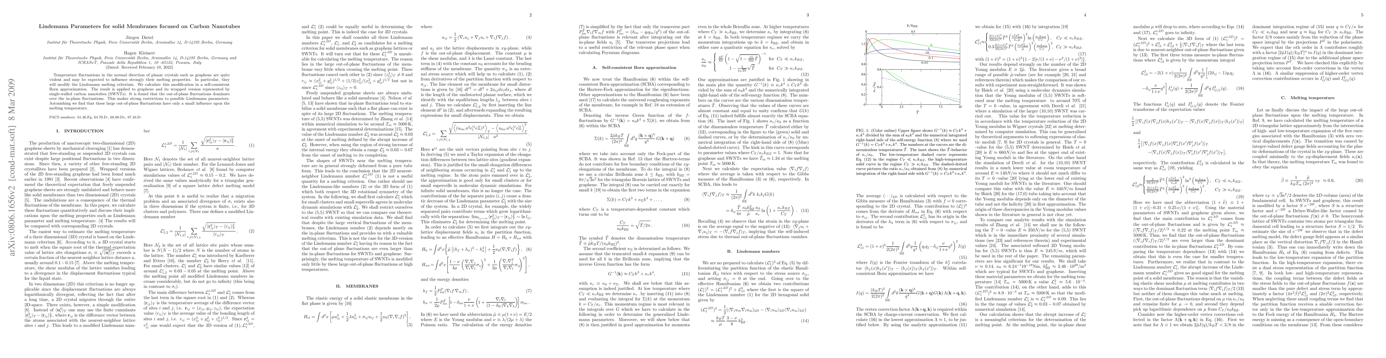 Temperature fluctuations in the normal direction of planar crystals such as graphene are quite violent and may be expected to influence strongly their melting properties. In particular, they will modify the Lindemann melting criterium. We calculate this modification in a self-consistent Born approximation. The result is applied to graphene and its wrapped version represented by single-walled carbon nanotubes (SWNTs). It is found that the out-of-plane fluctuations dominate over the in-plane fluctuations. This makes strong restrictions to possible Lindemann parameters. Astonishing we find that these large out-of-plane fluctuations have only a small influence upon the melting temperature.