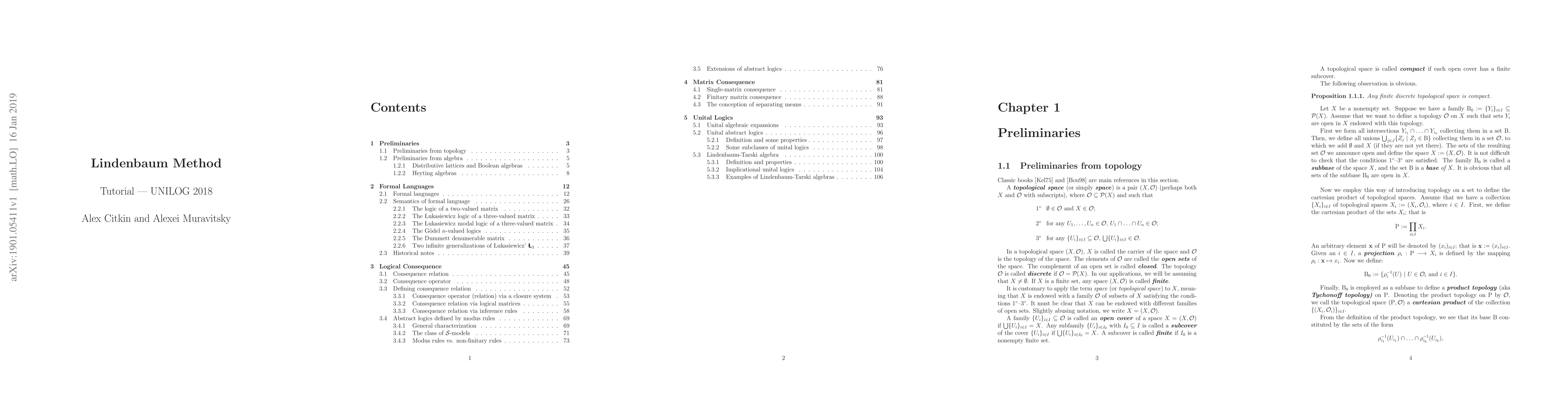 During his brief life, the Polish mathematician and logician Adolf Lindenbaum (1904--1941) contributed to mathematical logic, among other things, by several significant achievements. Some results of Lindenbaum's, which bear his name, were published without proofs by other people from the Lvov--Warsaw School and the proofs later were provided by some others, though the authorship of Lindenbaum has never been challenged. Many may have heard about Lindenbaum's lemma, asserting the existence of Lindenbaum's extension, and Lindenbaum-Tarski algebra; less known is Lindenbaum's logical matrix. This tutorial is devoted to the two last concepts rather than the first one. However, the latter can be understood in a purely algebraic fashion, if one employs the notion of Lindenbaum-Tarski algebra. In general, the notions of Lindenbaum matrix and Lindenbaum-Tarski algebra have paved a way to further algebraization of logic, which had been begun by George Boole in the 19th century, as well as to a new branch of logic, model theory. For this reason, the present tutorial is also a gentle introduction to algebraic logic. A uniting idea of the aforementioned concepts is a special view on the formal judgments of a formal language. It is this view we call the Lindenbaum method. Although Lindenbaum expressed merely a starting viewpoint in the tradition of Polish logic of the time, this viewpoint became a standard ever since and its development goes on until this day, continuing to shape the field of algebraic logic. Our main objective is to demonstrate how this view gave rise to formulating the aforementioned concepts and how it opens door to unexplored paths.