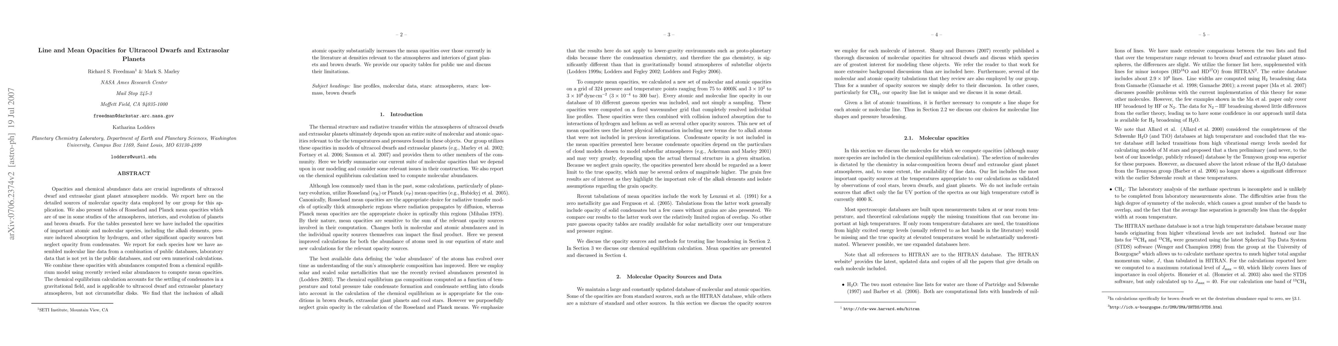 This paper provides detailed molecular opacity data for ultracool dwarfs and extrasolar planets, including tables of Rosseland and Planck mean opacities. It highlights the substantial increase in mean opacities due to the inclusion of alkali atomic opacity, offering these tables for public use while noting their limitations.