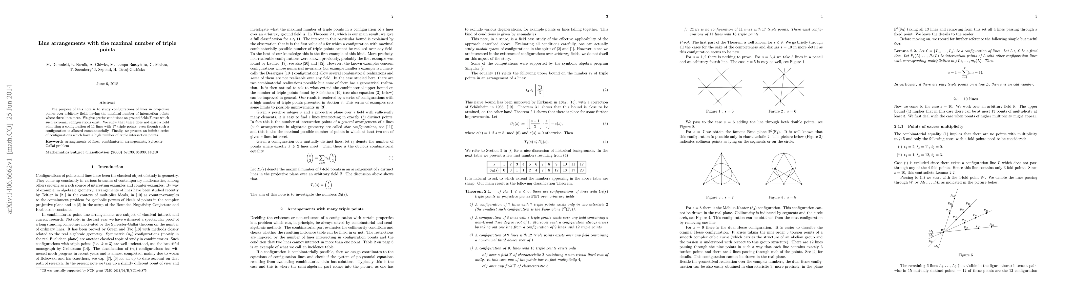 Researchers studied configurations of lines in projective planes with maximal triple intersection points and found conditions for their existence, ruling out a specific configuration with 11 lines and 17 triple points but presenting an infinite series of high-triple-point configurations.
