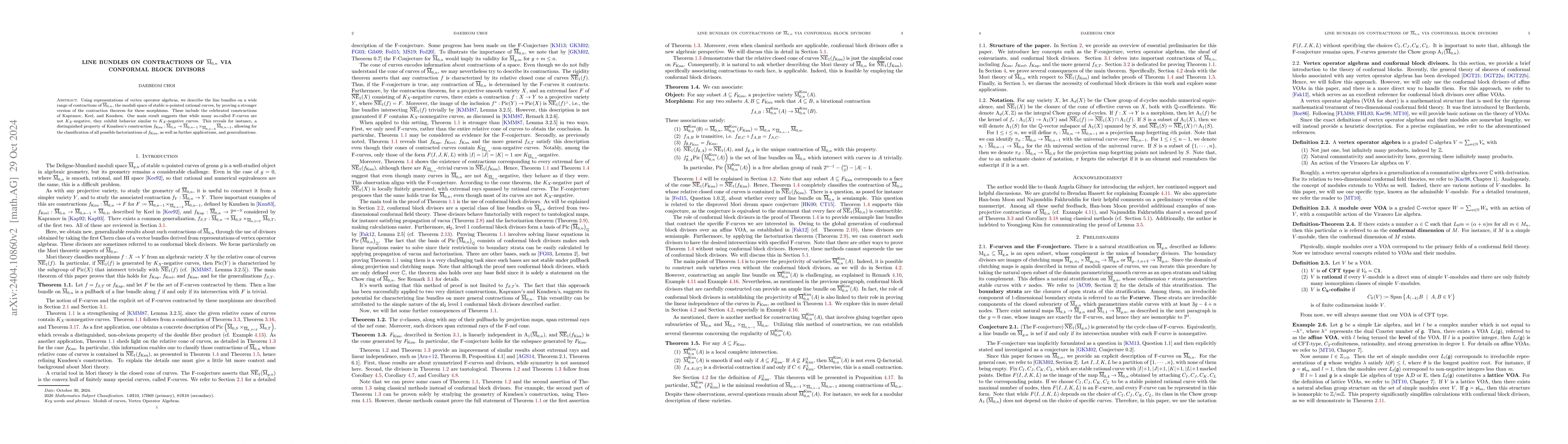 The moduli space of stable curves of genus $g$ with $n$ marked points, $\overline{\rm{M}}_{g,n}$, is a central object in algebraic geometry, and plays a crucial role in $2$-dimensional conformal field theory. In this paper, we apply the sheaf of coinvariants and conformal block divisors to study the geometry of $\overline{\rm{M}}_{0,n}$. The main theorem characterizes the line bundles on certain contractions of $\overline{\rm{M}}_{0,n}$ via F-curves, using Fakhruddin's basis for the Picard group given by conformal block divisors. This reveals a distinguished property of Knudsen's construction of $\overline{\rm{M}}_{0,n}$. As a notable consequence of this property, using the global generation of sheaves of coinvariants by Fakhruddin, we refine Knudsen's construction by describing every possible contraction of $\overline{\rm{M}}_{0,n}$ over it. An application of this refinement is given, and its potential for generalization is discussed.