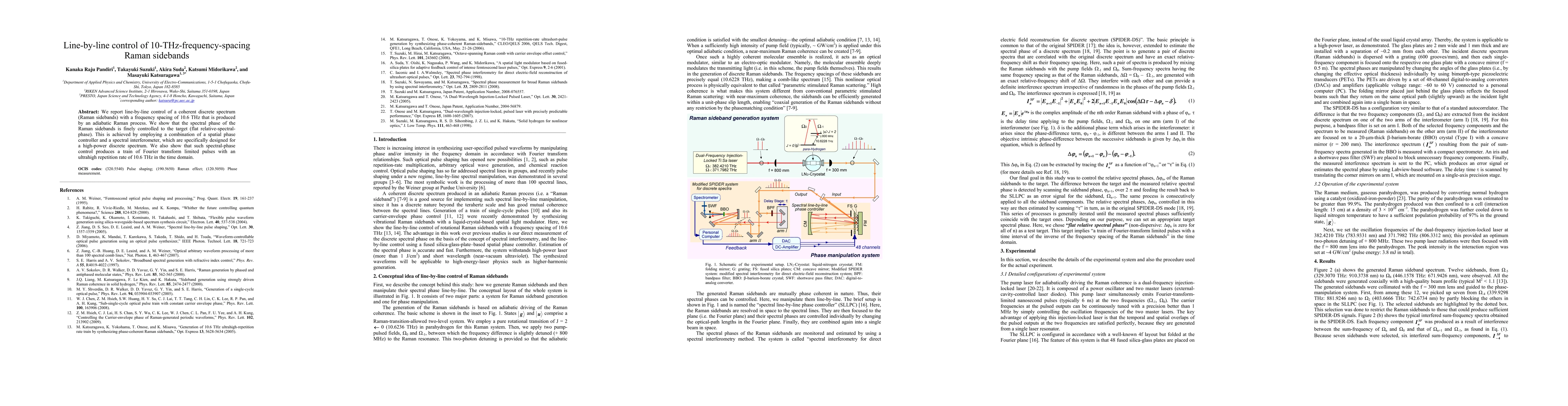 We report line-by-line control of a coherent discrete spectrum (Raman sidebands) with a frequency spacing of 10.6 THz that is produced by an adiabatic Raman process. We show that the spectral phase of the Raman sidebands is finely controlled to the target (flat relative-spectral-phase). This is achieved by employing a combination of a spatial phase controller and a spectral interferometer, which are specifically designed for a high-power discrete spectrum. We also show that such spectral-phase control produces a train of Fourier transform limited pulses with an ultrahigh repetition rate of 10.6 THz in the time domain.