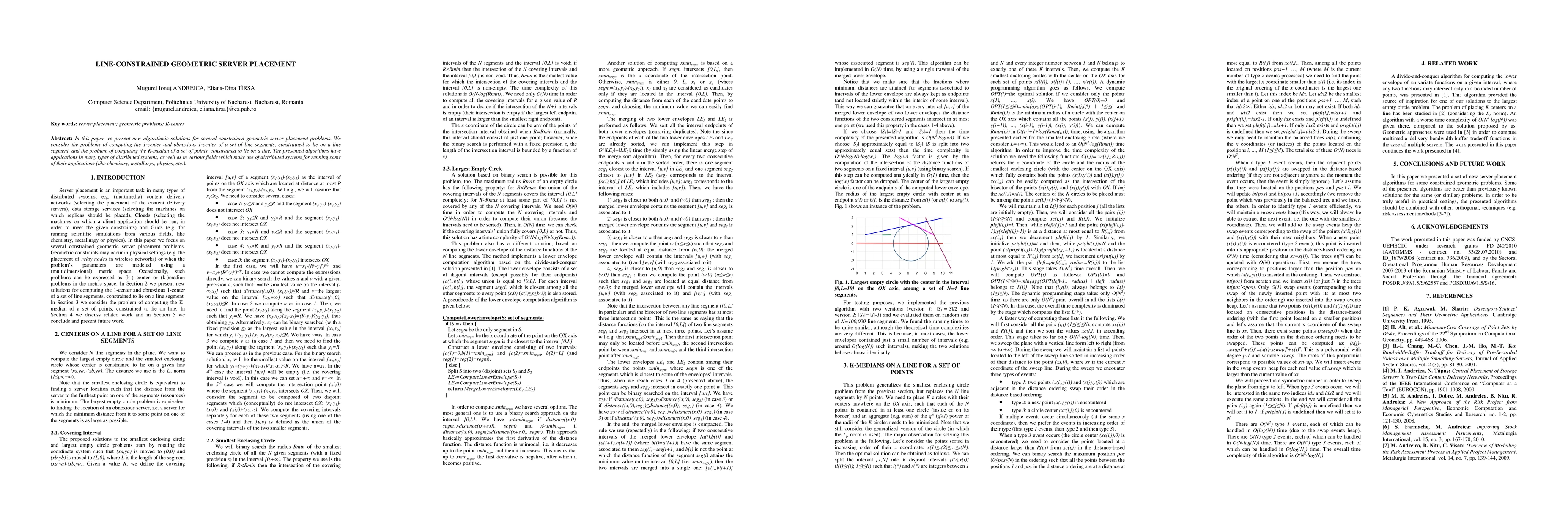 New algorithms solve geometric server placement problems with line constraints, applicable to distributed systems in various fields.