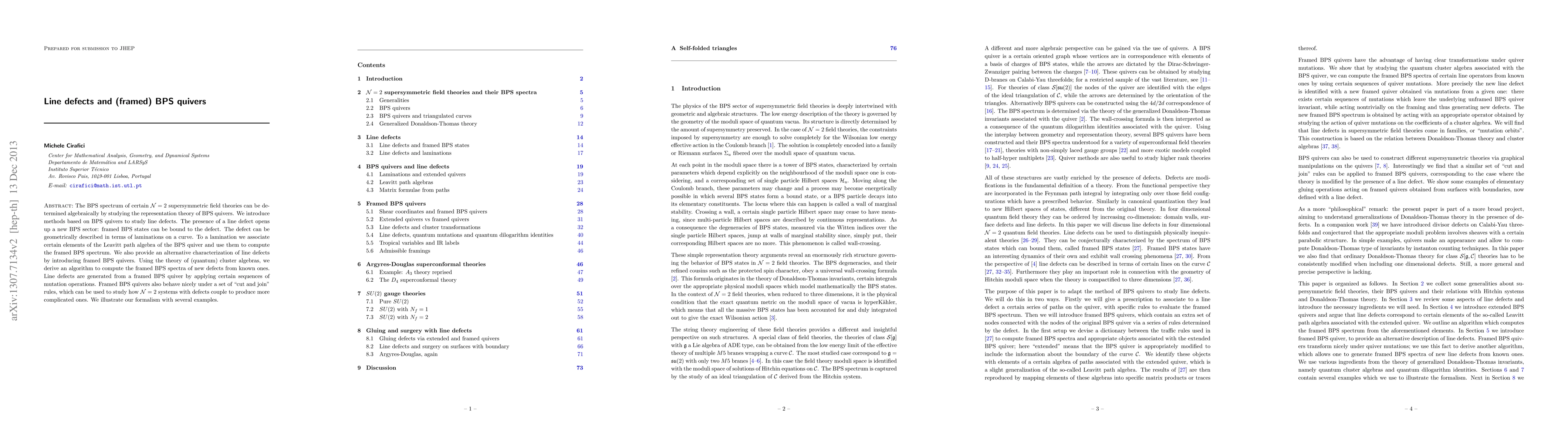 The research introduces methods based on BPS quivers to study line defects in N=2 supersymmetric field theories, associating elements of the Leavitt path algebra of the BPS quiver to geometrically describe the defect via laminations on a curve.