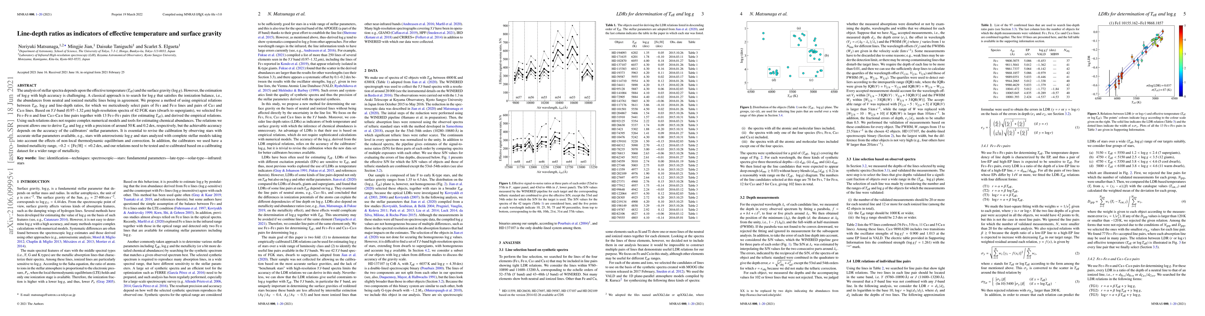 This paper proposes a method using empirical relations between effective temperature (Teff), surface gravity (log g), and line-depth ratios of FeI, FeII, CaI, and CaII lines to estimate stellar parameters without complex numerical models. The method achieves Teff and log g estimates with precisions of around 50 K and 0.2 dex, respectively, but requires further calibration and testing across a wider range of stellar metallicities.