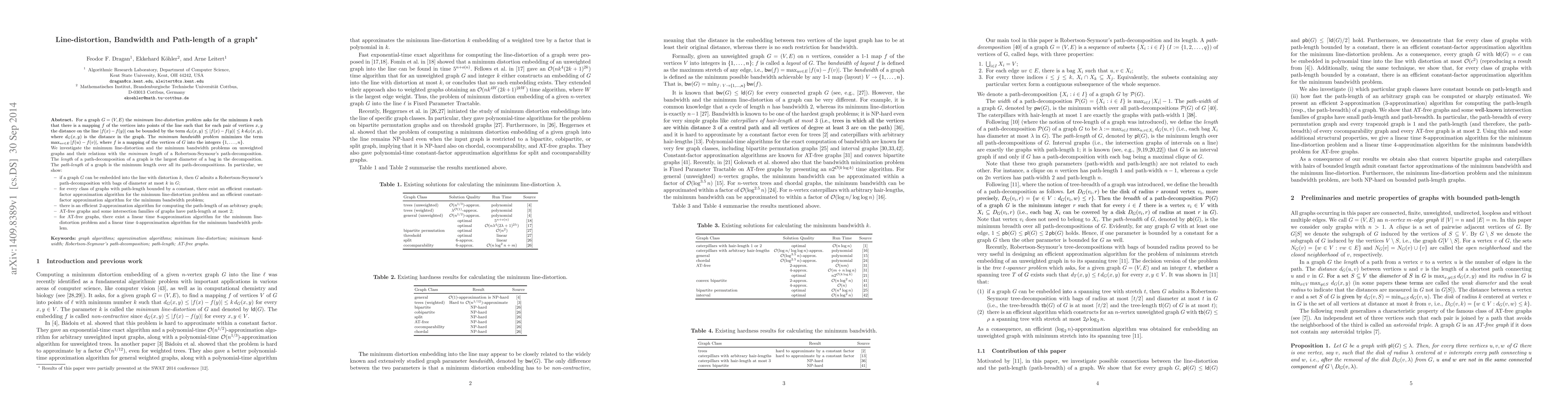 This research paper investigates the relationships between line-distortion, bandwidth, path-length, and Robertson-Seymour's path-decomposition in graphs, with key findings including efficient algorithms for approximation problems and linear-time approximations for specific graph classes.