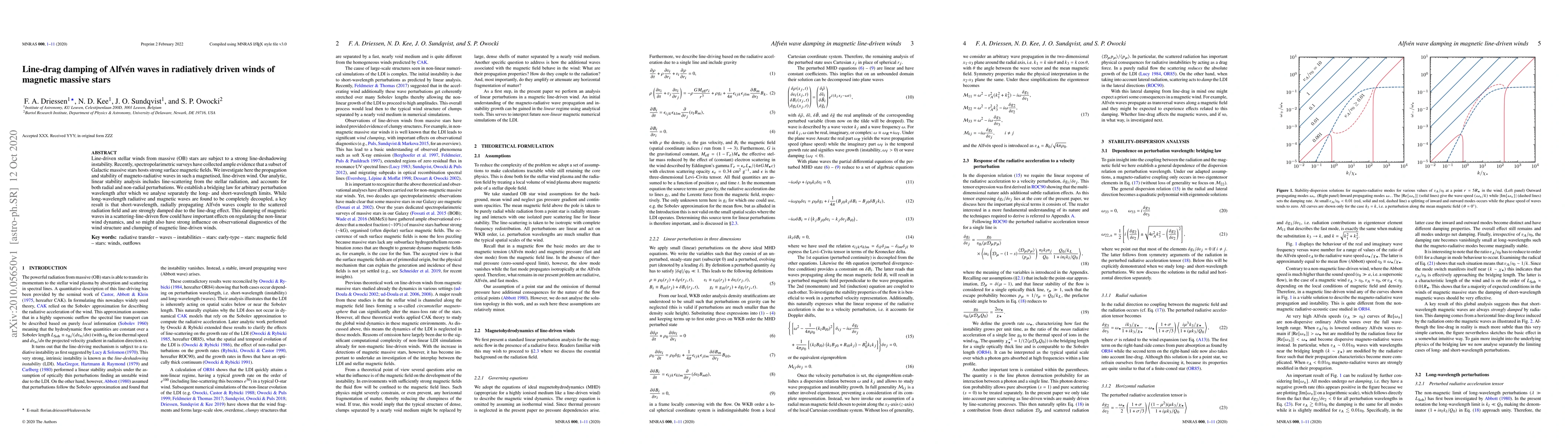 Line-driven stellar winds from massive (OB) stars are subject to a strong line-deshadowing instability. Recently, spectropolarimetric surveys have collected ample evidence that a subset of Galactic massive stars hosts strong surface magnetic fields. We investigate here the propagation and stability of magneto-radiative waves in such a magnetised, line-driven wind. Our analytic, linear stability analysis includes line-scattering from the stellar radiation, and accounts for both radial and non-radial perturbations. We establish a bridging law for arbitrary perturbation wavelength after which we analyse separately the long- and short-wavelength limits. While long-wavelength radiative and magnetic waves are found to be completely decoupled, a key result is that short-wavelength, radially propagating Alfv\'en waves couple to the scattered radiation field and are strongly damped due to the line-drag effect. This damping of magnetic waves in a scattering-line-driven flow could have important effects on regulating the non-linear wind dynamics, and so might also have strong influence on observational diagnostics of the wind structure and clumping of magnetic line-driven winds.