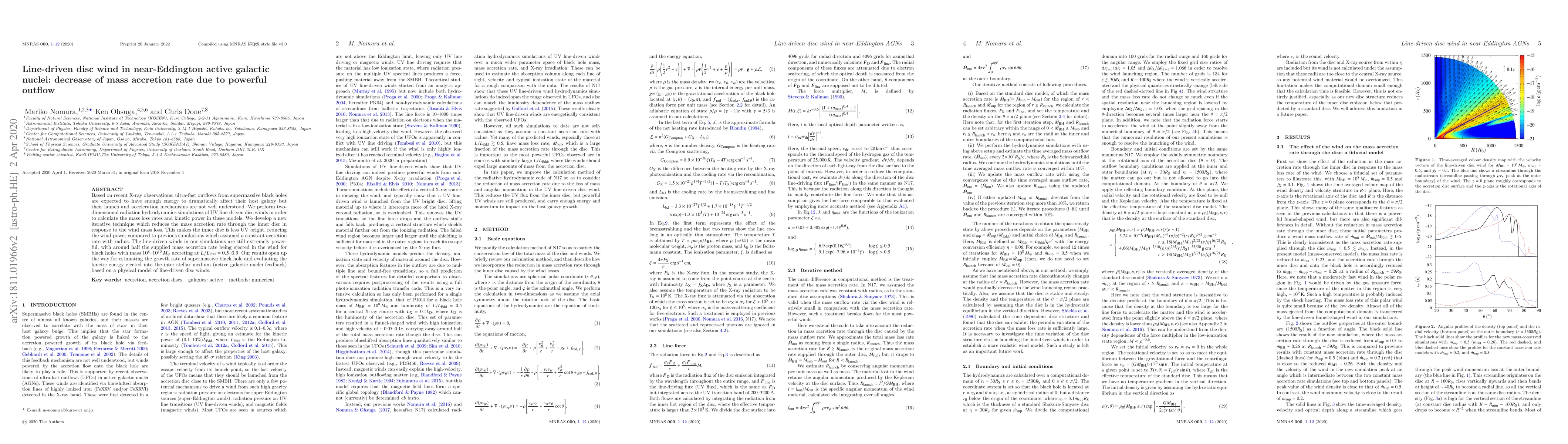 This paper uses radiation hydrodynamics simulations to explore UV line-driven disc winds in near-Eddington active galactic nuclei, finding that powerful outflows reduce mass accretion rates and the winds' kinetic power. The simulations show significant mass ejection, impacting black hole growth and AGN feedback.
