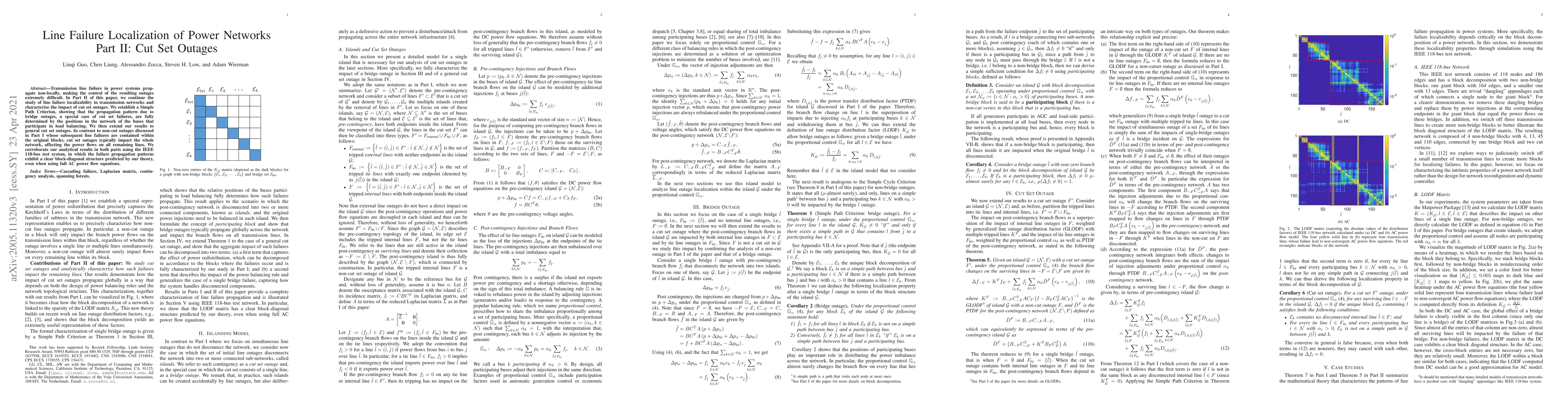 Transmission line failure in power systems prop-agate non-locally, making the control of the resulting outages extremely difficult. In Part II of this paper, we continue the study of line failure localizability in transmission networks and characterize the impact of cut set outages. We establish a Simple Path Criterion, showing that the propagation pattern due to bridge outages, a special case of cut set failures, are fully determined by the positions in the network of the buses that participate in load balancing. We then extend our results to general cut set outages. In contrast to non-cut outages discussed in Part I whose subsequent line failures are contained within the original blocks, cut set outages typically impact the whole network, affecting the power flows on all remaining lines. We corroborate our analytical results in both parts using the IEEE 118-bus test system, in which the failure propagation patterns exhibit a clear block-diagonal structure predicted by our theory, even when using full AC power flow equations.