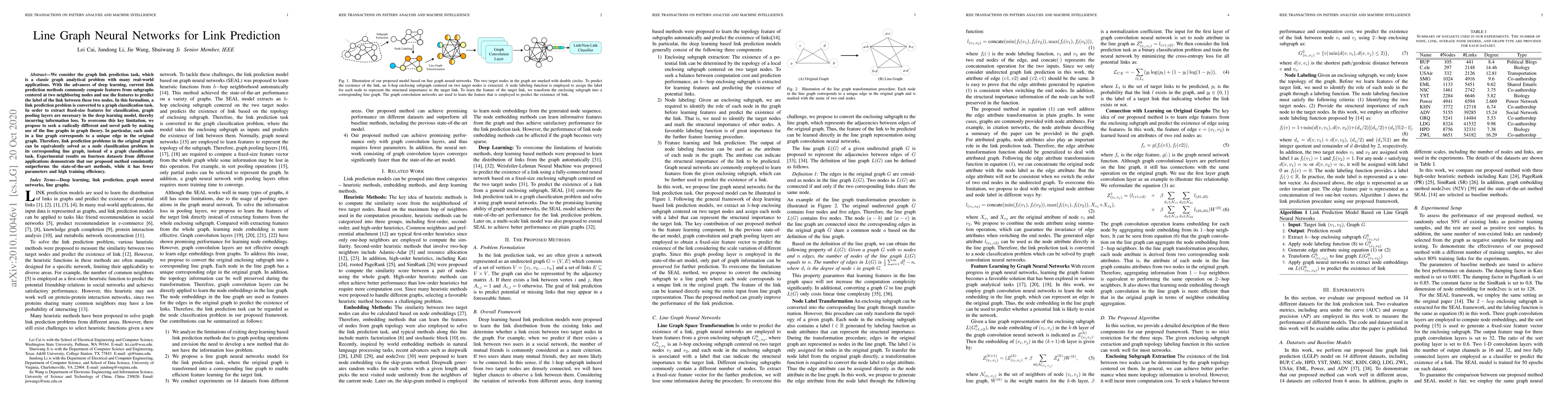 This paper proposes a novel link prediction method using line graph neural networks, transforming the problem into a node classification task in the line graph, which avoids information loss from graph pooling. Experimental results show superior performance compared to state-of-the-art methods, with fewer parameters and higher training efficiency.