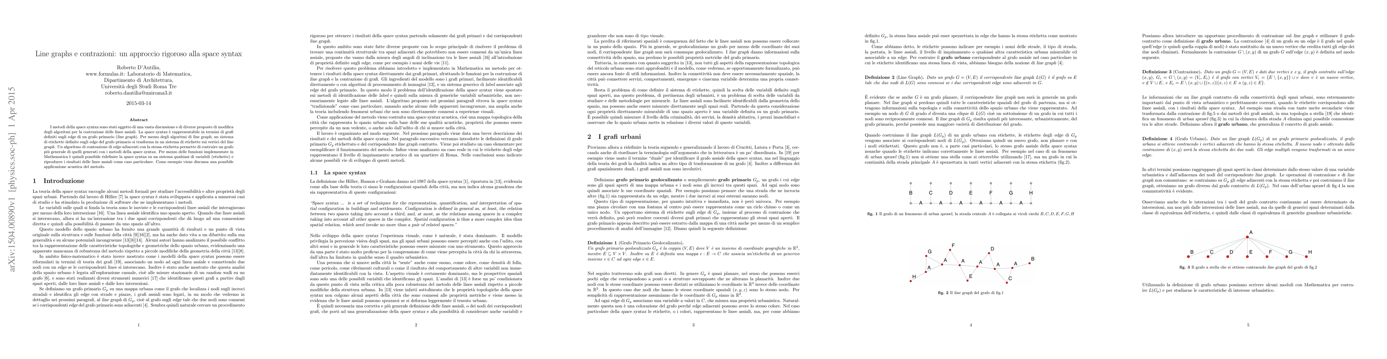 The methods of the space syntax have been the subject of extensive discussion, and several techniques to identify the axis lines have been proposed. The space syntax can be represented in terms of line graph, a graphs defined on the edge of a given primary graph. By means of the line graph algorithms, a system of labels defined on the edges of the primary graph is transformed into a system of labels on the vertices of the line graph. The contraction of adjacent edges with the same label allows to build a more general graph than those generated with the methods of the space syntax. By means of the functions implemented in Mathematica is therefore possible to redefine the space syntax on any system of urban quantities (labels) and reproduce the results of the axial lines as a special case. As an example is discussed a possible application of the method to the urban noise analysis.