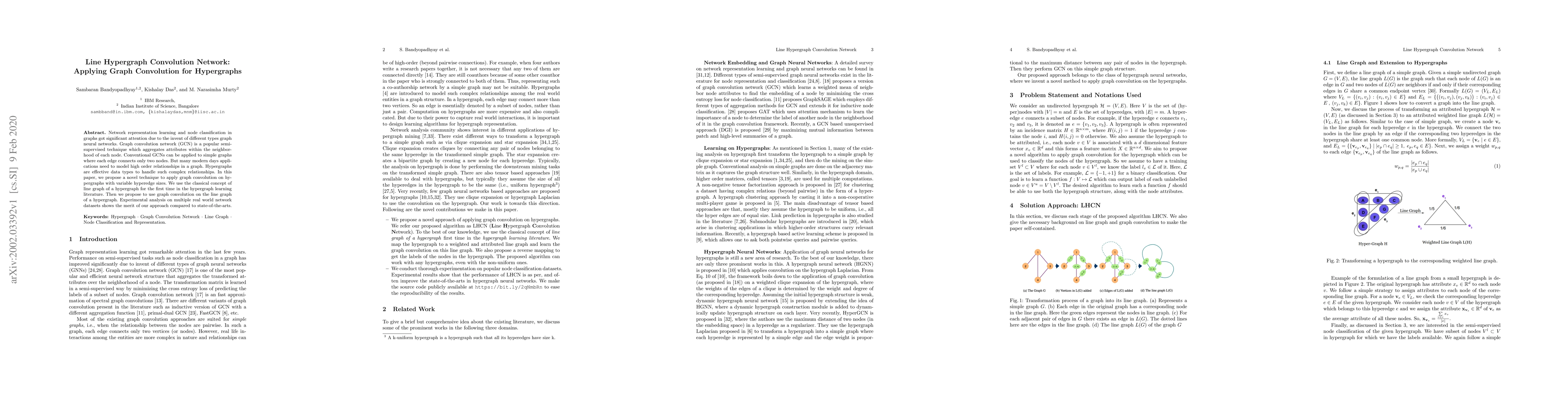 This paper proposes a novel graph convolution network for hypergraphs, utilizing the concept of line graphs to handle high-order relationships. Experimental results demonstrate the effectiveness of the approach over existing state-of-the-art methods on various real-world datasets.
