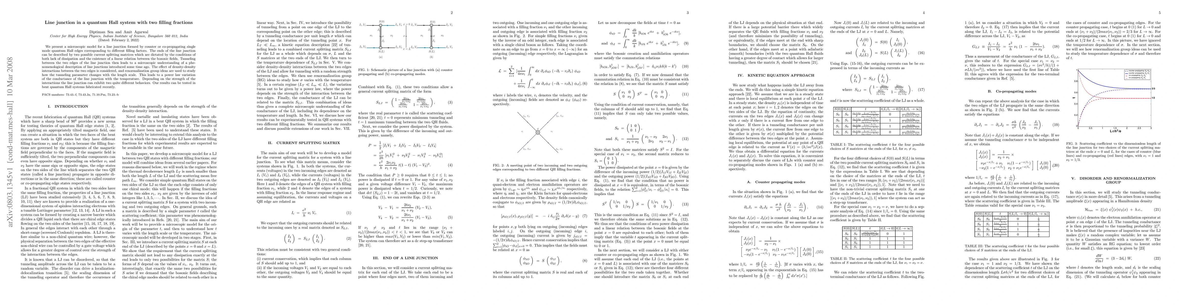 This paper presents a microscopic model for a line junction in quantum Hall systems with different filling fractions, exploring current splitting matrices and tunneling effects. It uses renormalization group techniques to analyze conductance variations with temperature, revealing distinct behaviors based on interaction strengths, with potential experimental verification in recent bent quantum Hall systems.