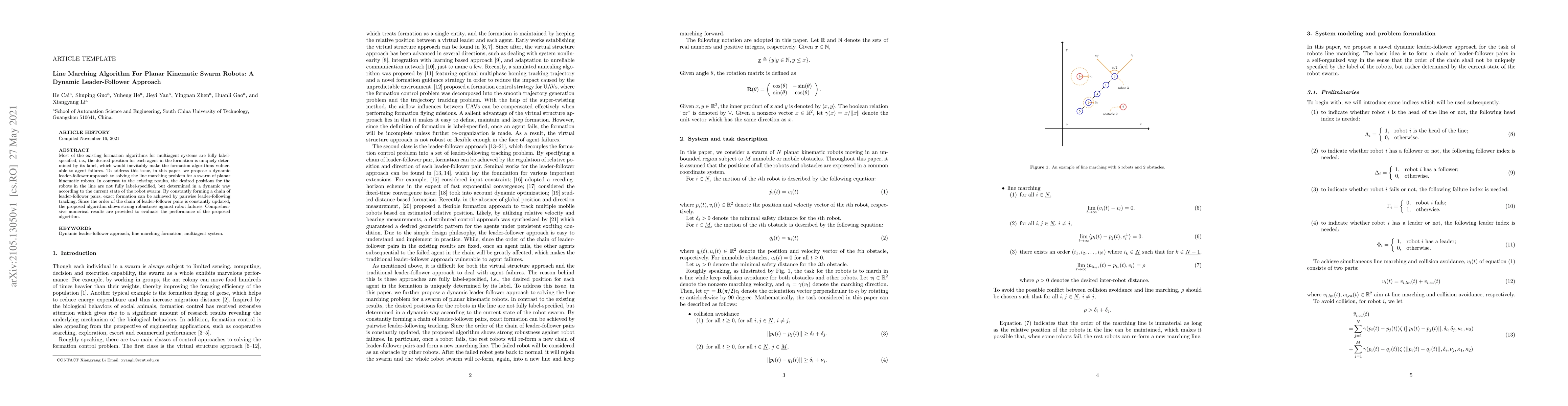 Most of the existing formation algorithms for multiagent systems are fully label-specified, i.e., the desired position for each agent in the formation is uniquely determined by its label, which would inevitably make the formation algorithms vulnerable to agent failures. To address this issue, in this paper, we propose a dynamic leader-follower approach to solving the line marching problem for a swarm of planar kinematic robots. In contrast to the existing results, the desired positions for the robots in the line are not fully label-specified, but determined in a dynamic way according to the current state of the robot swarm. By constantly forming a chain of leader-follower pairs, exact formation can be achieved by pairwise leader-following tracking. Since the order of the chain of leader-follower pairs is constantly updated, the proposed algorithm shows strong robustness against robot failures. Comprehensive numerical results are provided to evaluate the performance of the proposed algorithm.