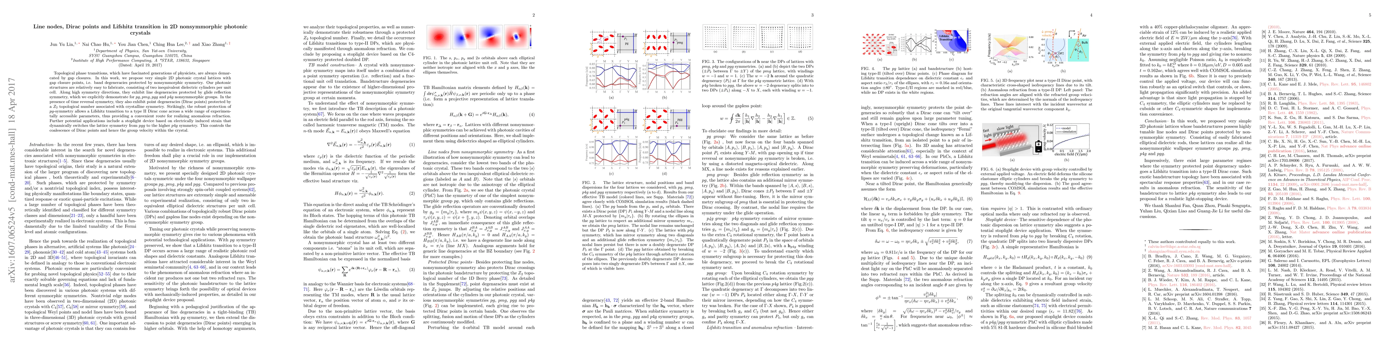Researchers discovered 2D photonic crystals with line degeneracies protected by nonsymmorphic symmetry, exhibiting unique optical properties including a Lifshitz transition to a type II Dirac cone.