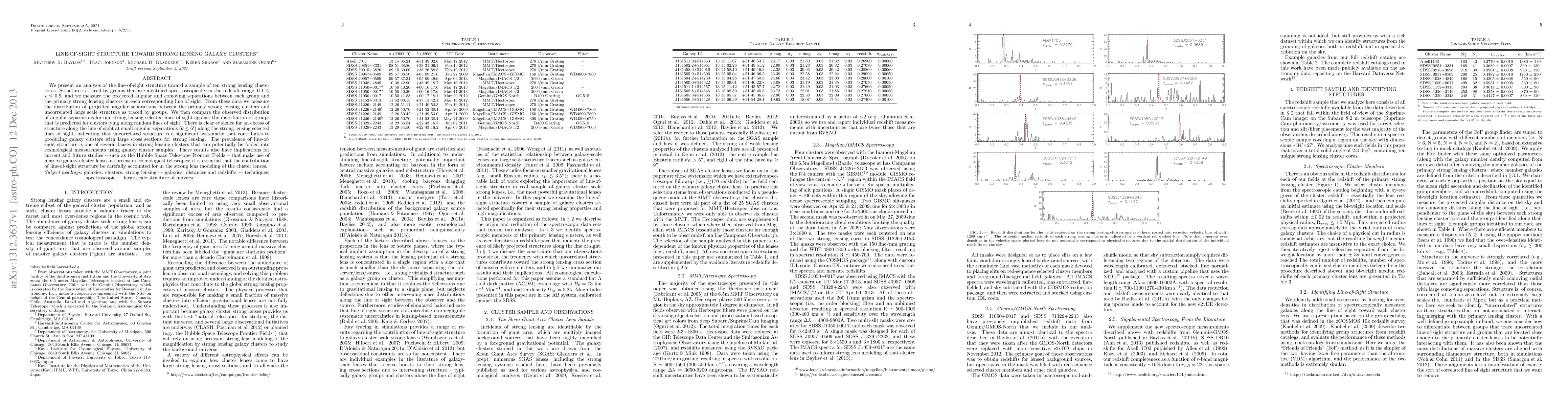 This study analyzes the line-of-sight structure toward ten strong lensing galaxy clusters, identifying groups of galaxies to measure the distribution of angular separations. It finds an excess of structure along the line of sight at small angular separations, indicating significant contributions from uncorrelated large-scale structure to strong lensing effects.