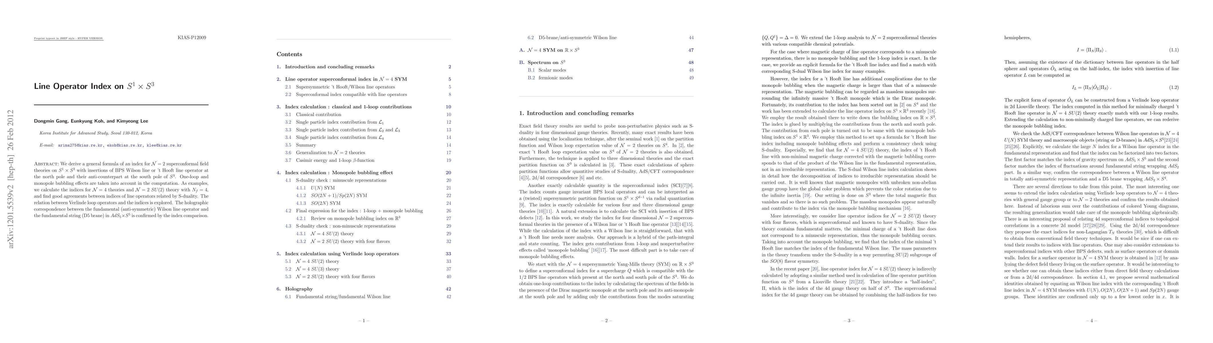This paper derives a general index formula for N=2 superconformal field theories on S1 × S3, considering BPS Wilson and 't Hooft line operators. It confirms the holographic correspondence between Wilson line operators and fundamental strings in AdS5 × S5, and finds good agreement between indices related by S-duality in N=4 and N=2 SU(2) theories.