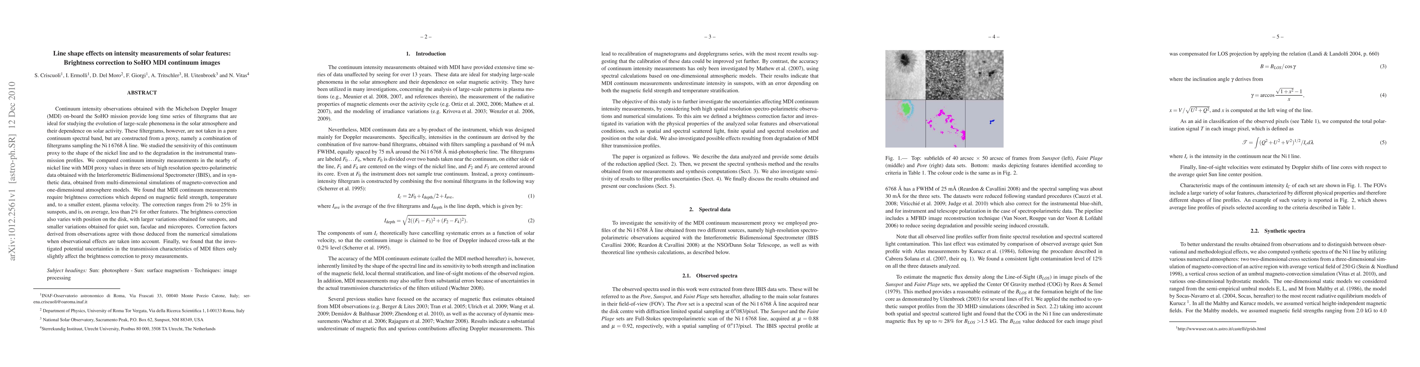 This study investigates the effects of line shape and instrumental transmission degradation on the continuum intensity measurements from the SoHO MDI instrument, finding that the proxy continuum requires brightness corrections dependent on magnetic field strength, temperature, and plasma velocity. The correction ranges from 2% to 25% in sunspots and is generally less than 2% for other solar features, with variations also influenced by position on the solar disk.