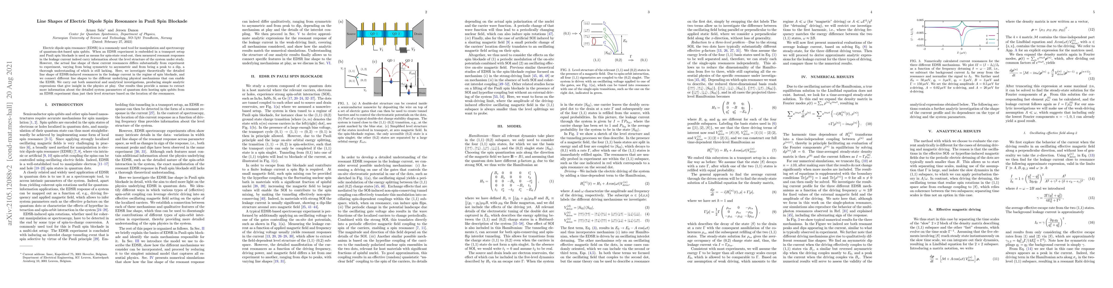 Electric dipole spin resonance (EDSR) is a commonly used tool for manipulation and spectroscopy of quantum-dot-based spin qubits. When an EDSR experiment is embedded in a transport setup and Pauli spin blockade is used as means for spin-state read-out, then measured resonant responses in the leakage current indeed carry information about the level structure of the system under study. However, the actual line shape of these current resonances differs substantially from experiment to experiment, varying from being symmetric to asymmetric and from being a peak to a dip, a thorough understanding of which is still lacking. Here, we investigate theoretically the detailed line shape of EDSR-induced resonances in the leakage current in the regime of spin blockade, and we connect different line shapes to the different underlying physical mechanisms that can enable the EDSR. We carry out both numerical and analytical investigations, producing simple analytic expressions that give insight in the physics at play. Our results thus provide a means to extract more information about the detailed system parameters of quantum dots hosting spin qubits from an EDSR experiment than just their level structure based on the location of the resonances.