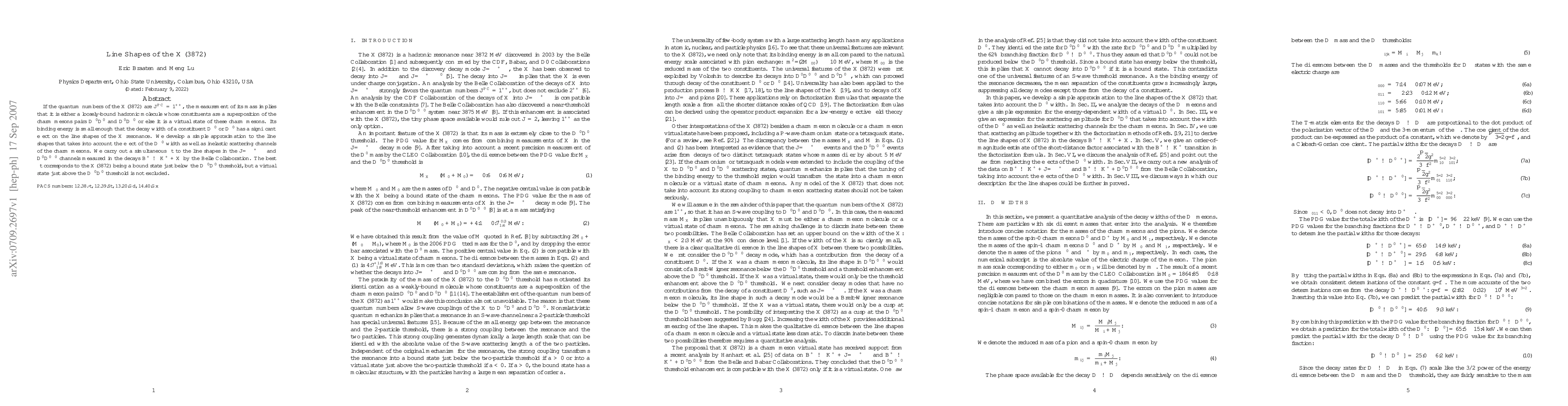 If the quantum numbers of the X(3872) are J^{PC}=1^{++}, the measurement of its mass implies that it is either a loosely-bound hadronic molecule whose constituents are a superposition of the charm mesons pairs D^{*0} Dbar^0 and D^0 Dbar^{*0} or else it is a virtual state of these charm mesons. Its binding energy is small enough that the decay width of a constituent D^{*0} or Dbar^{*0} has a significant effect on the line shapes of the X resonance. We develop a simple approximation to the line shapes that takes into account the effect of the D^{*0} width as well as inelastic scattering channels of the charm mesons. We carry out a simultaneous fit to the line shapes in the J/psi pi^+ pi^- and D^0 Dbar^0 pi^0 channels measured in the decays B^+ to K^+ + X by the Belle Collaboration. The best fit corresponds to the X(3872) being a bound state just below the D^{*0} Dbar^0 threshold, but a virtual state just above the D^{*0} D-ar^0 threshold is not excluded.