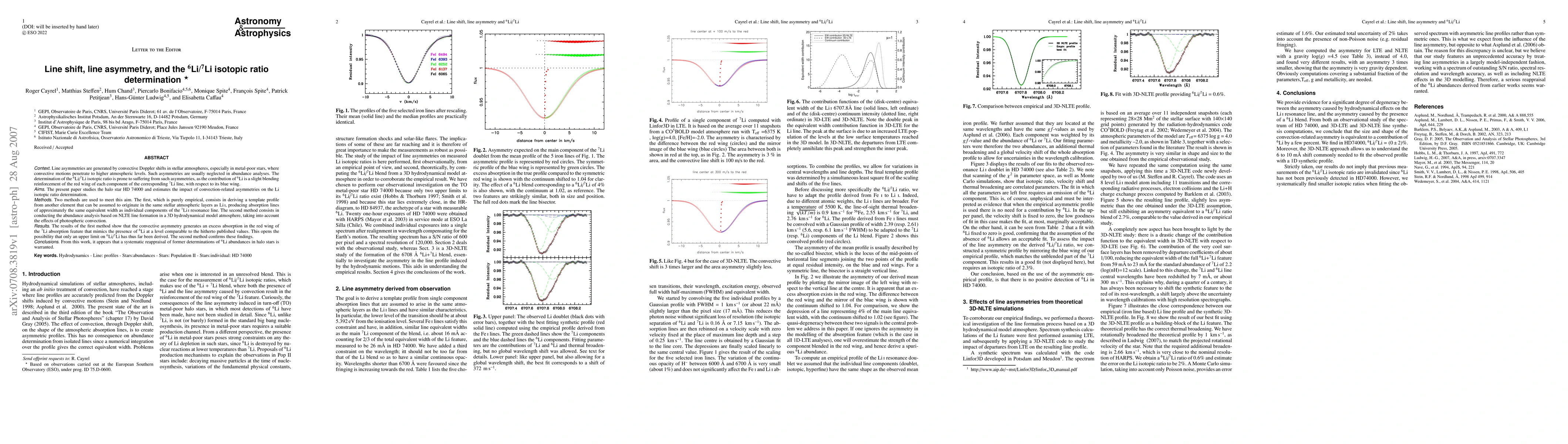 This paper investigates the impact of convective Doppler shifts on the determination of the 6Li/7Li isotopic ratio in metal-poor stars, finding that asymmetries in stellar lines can mimic the presence of 6Li. Both empirical and NLTE modeling methods confirm that these asymmetries may have led to previously overestimated 6Li abundances, suggesting a reevaluation of past measurements.