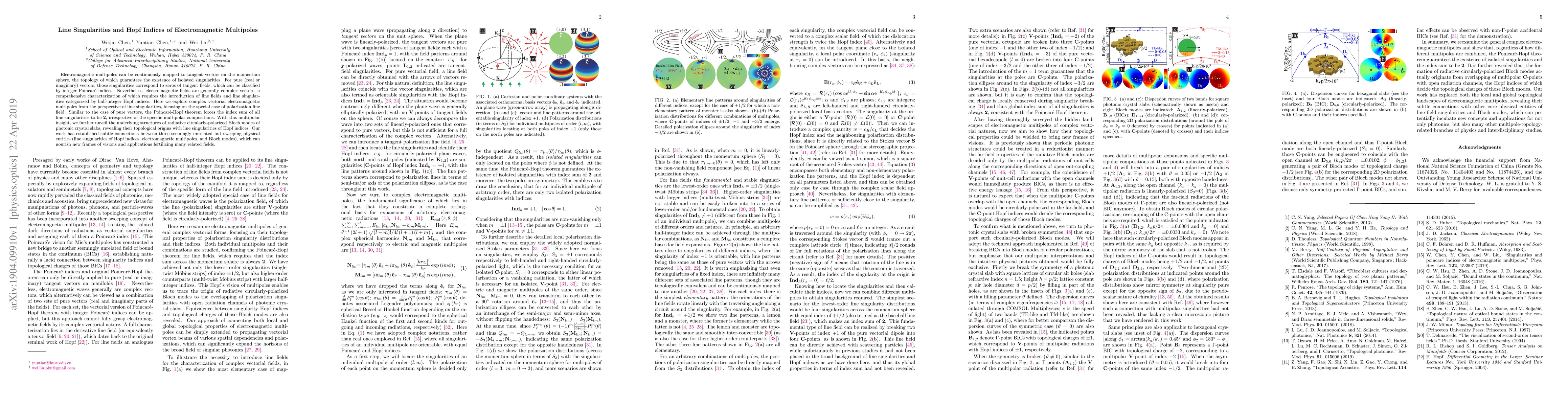 This paper explores the topological properties of complex vectorial electromagnetic multipoles through the lens of line singularities and half-integer Hopf indices, revealing the underlying structures of radiative circularly-polarized Bloch modes in photonic crystal slabs. The study establishes a connection between line singularities, electromagnetic multipoles, and Bloch modes, offering new insights for related fields.