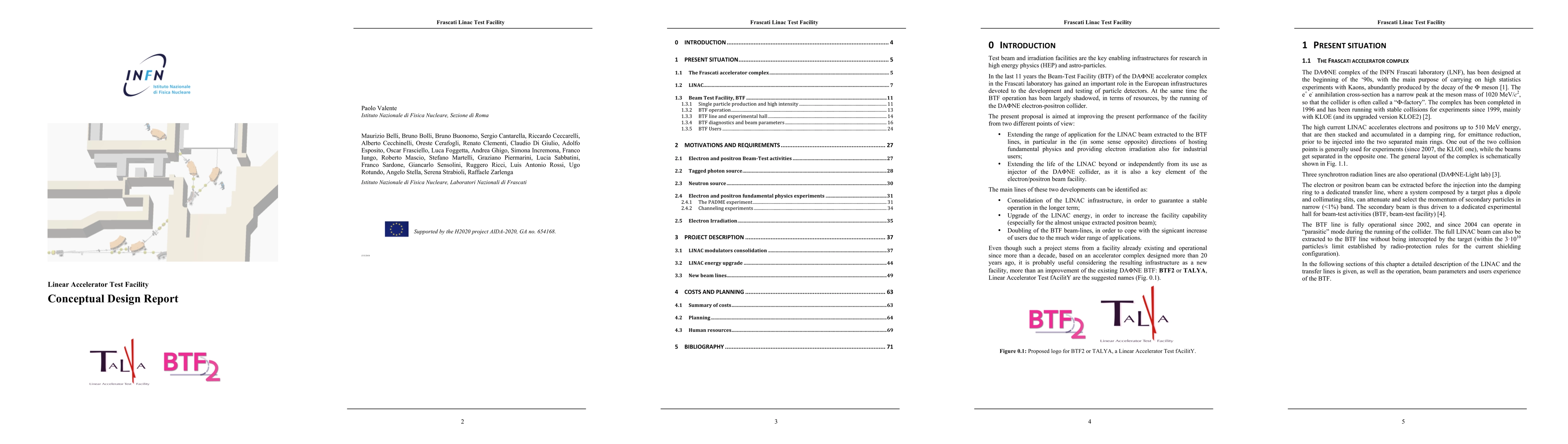 This paper proposes a conceptual design for enhancing the Linear Accelerator Test Facility (BTF) at the LNF, focusing on extending the LINAC's application range for fundamental physics and industrial electron irradiation, and upgrading the LINAC's energy to boost its capabilities, particularly for positron beams. The plan also includes doubling the BTF beam lines to accommodate a growing user base from expanded applications.