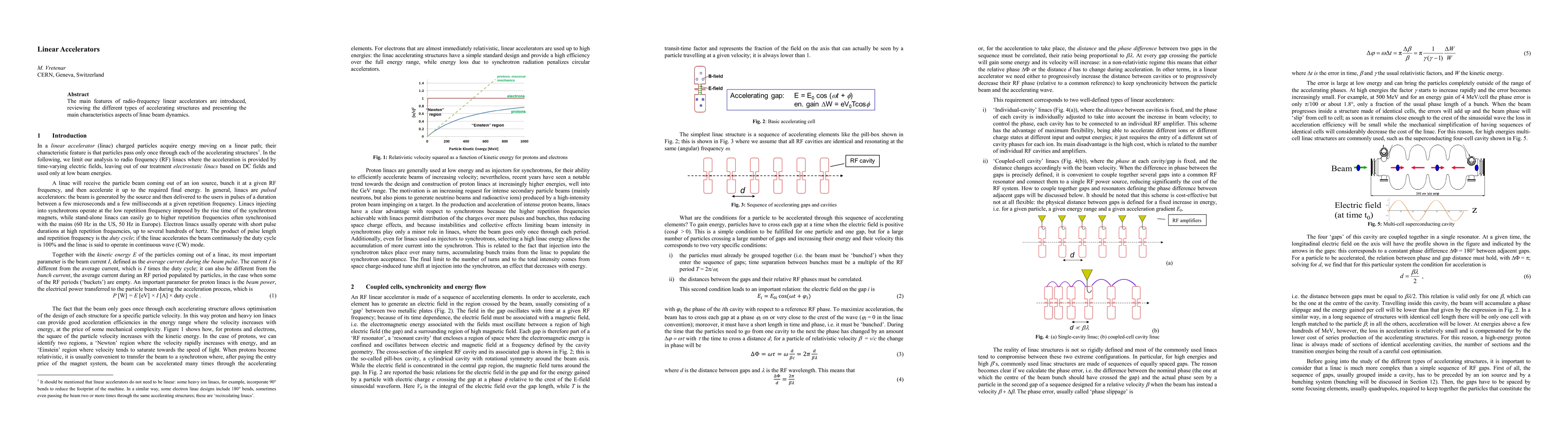 This paper provides an overview of radio-frequency linear accelerators, detailing various accelerating structures and key beam dynamic characteristics, serving as a foundational resource for understanding linac design and functionality.