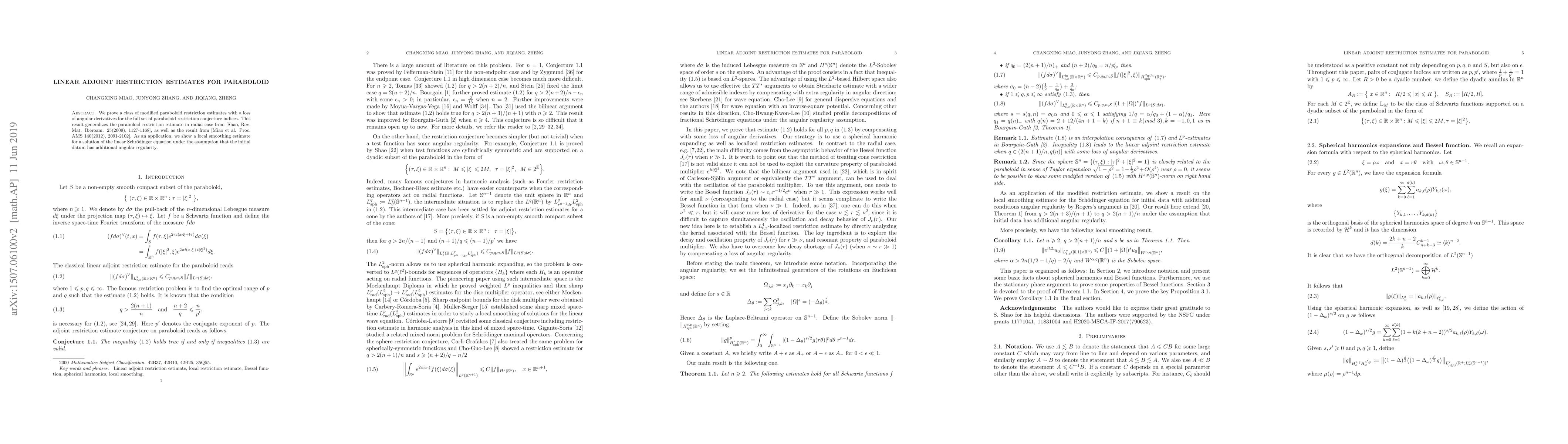 This paper establishes modified paraboloid restriction estimates with angular derivative losses, generalizing previous results. It also applies these estimates to derive local smoothing estimates for solutions of the linear Schrödinger equation with enhanced angular regularity.