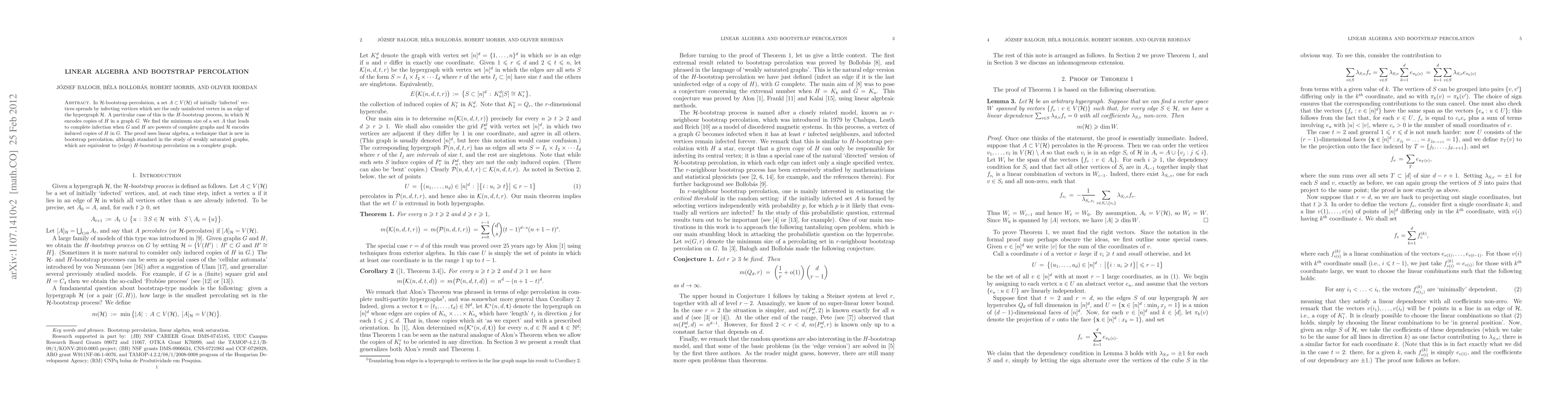 In $\HH$-bootstrap percolation, a set $A \subset V(\HH)$ of initially 'infected' vertices spreads by infecting vertices which are the only uninfected vertex in an edge of the hypergraph $\HH$. A particular case of this is the $H$-bootstrap process, in which $\HH$ encodes copies of $H$ in a graph $G$. We find the minimum size of a set $A$ that leads to complete infection when $G$ and $H$ are powers of complete graphs and $\HH$ encodes induced copies of $H$ in $G$. The proof uses linear algebra, a technique that is new in bootstrap percolation, although standard in the study of weakly saturated graphs, which are equivalent to (edge) $H$-bootstrap percolation on a complete graph.