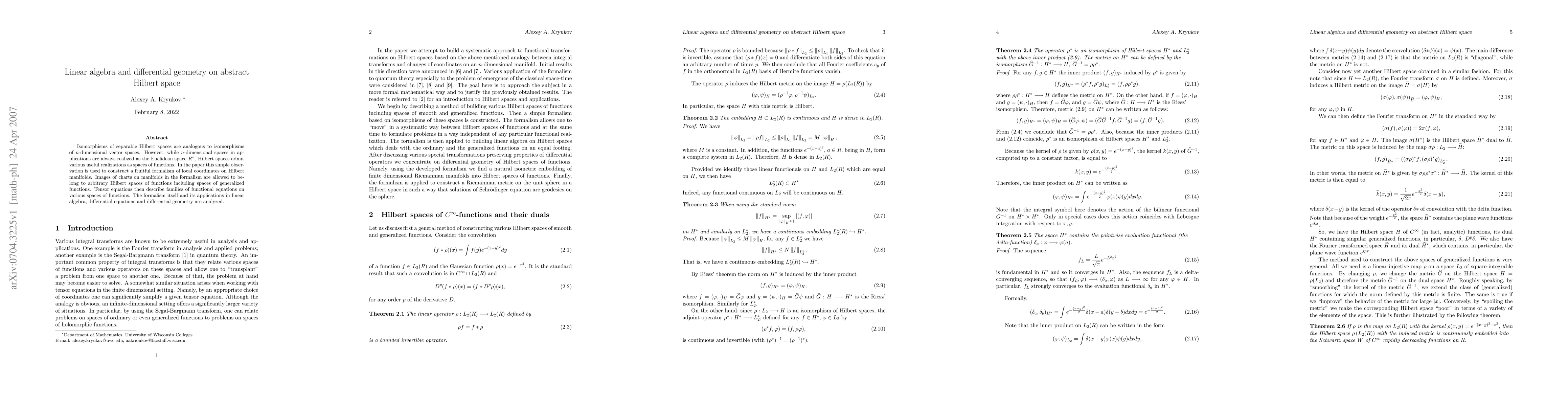 This paper explores the construction of local coordinate formalism on Hilbert manifolds using isomorphisms of separable Hilbert spaces, allowing tensor equations to describe functional equations across various functional spaces, and analyzes its applications in linear algebra, differential equations, and differential geometry.