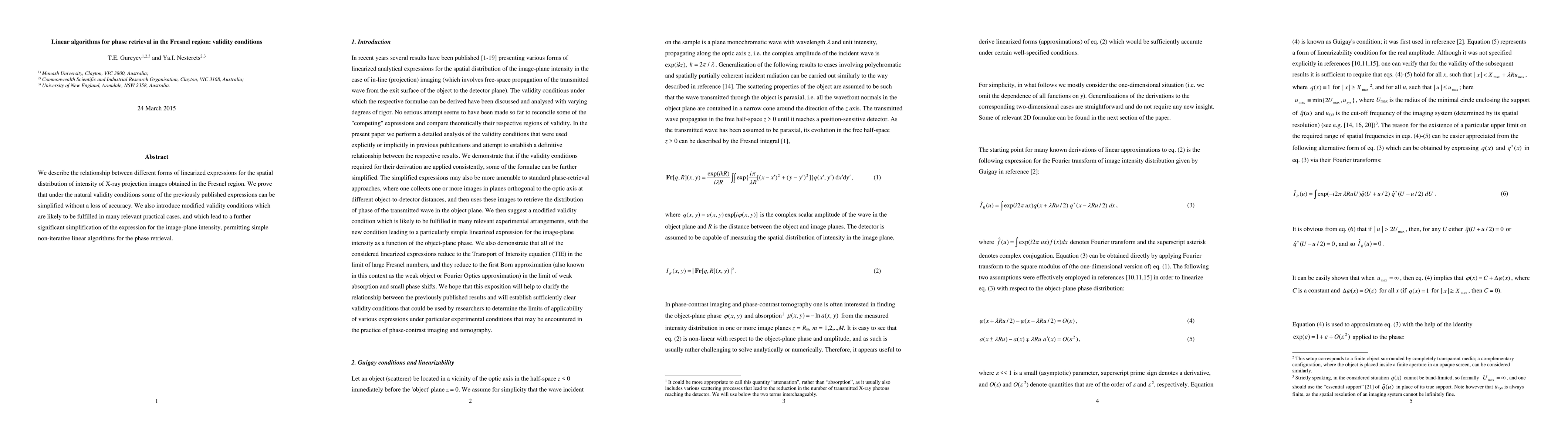 We describe the relationship between different forms of linearized expressions for the spatial distribution of intensity of X-ray projection images obtained in the Fresnel region. We prove that under the natural validity conditions some of the previously published expressions can be simplified without a loss of accuracy. We also introduce modified validity conditions which are likely to be fulfilled in many relevant practical cases, and which lead to a further significant simplification of the expression for the image-plane intensity, permitting simple non-iterative linear algorithms for the phase retrieval.
