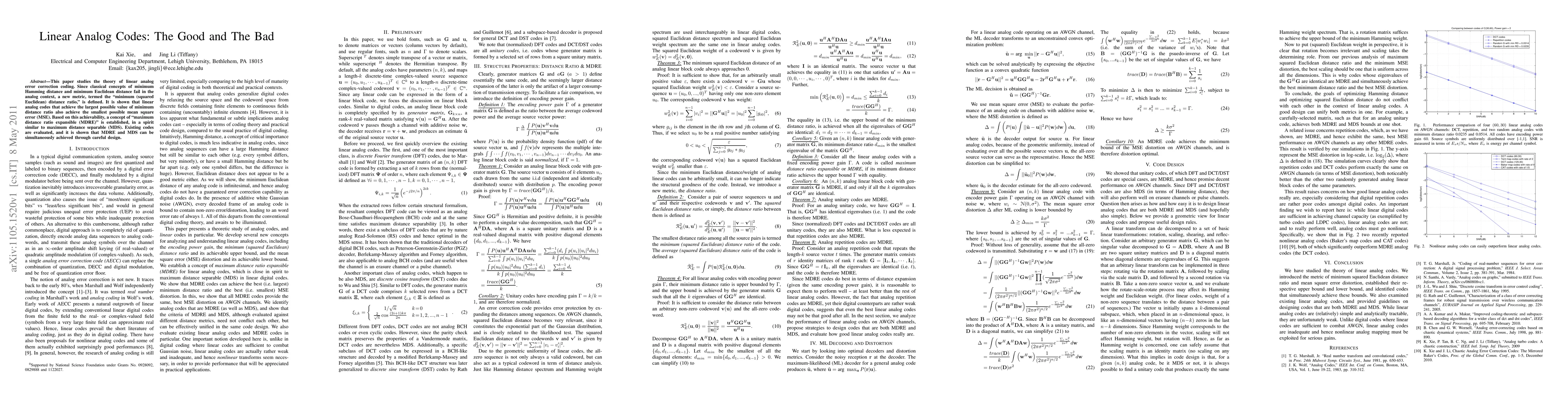 Linear analog codes achieve smallest mean square error when maximizing minimum distance ratio, establishing a new concept called maximum distance ratio expansible (MDRE) similar to MDS.