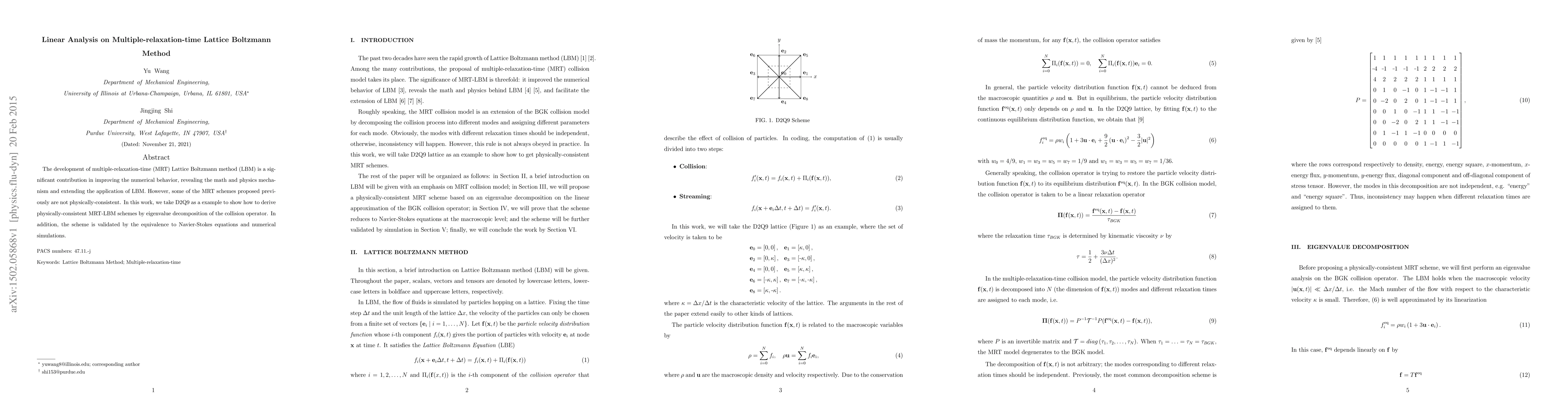 This paper develops a physically-consistent multiple-relaxation-time (MRT) Lattice Boltzmann Method (LBM) using eigenvalue decomposition for the D2Q9 model, ensuring its alignment with Navier-Stokes equations and validating it through numerical simulations.