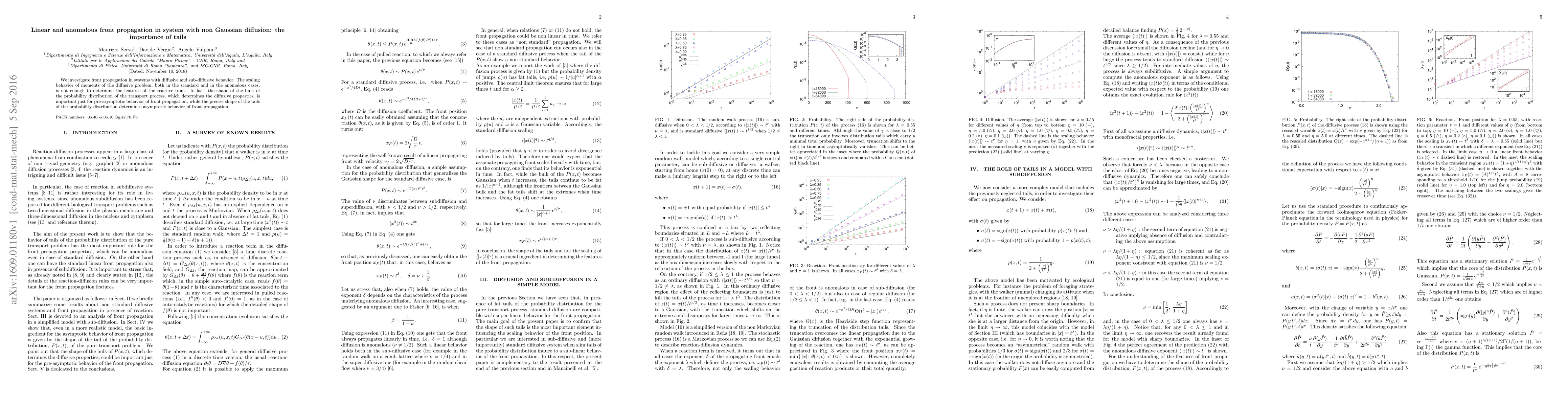 This paper explores front propagation in systems with non-Gaussian diffusion, emphasizing that the tails of the probability distribution play a crucial role in determining the asymptotic behavior of front propagation, beyond just the scaling behavior of moments.