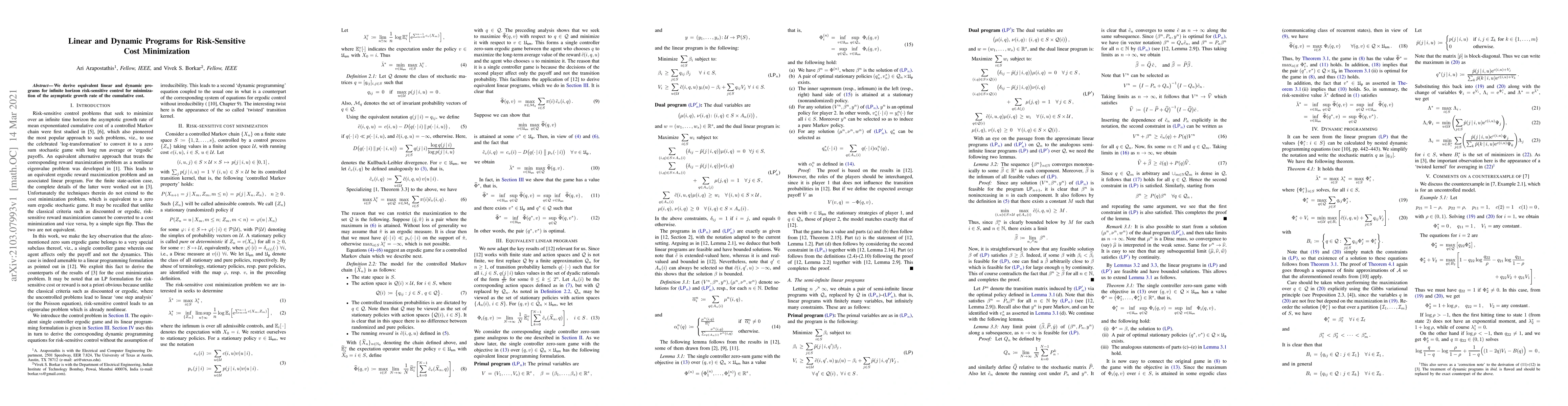 Researchers develop equivalent linear and dynamic programs for minimizing cumulative cost while accounting for risk in infinite horizon control. This approach can help optimize growth rates in high-risk scenarios.