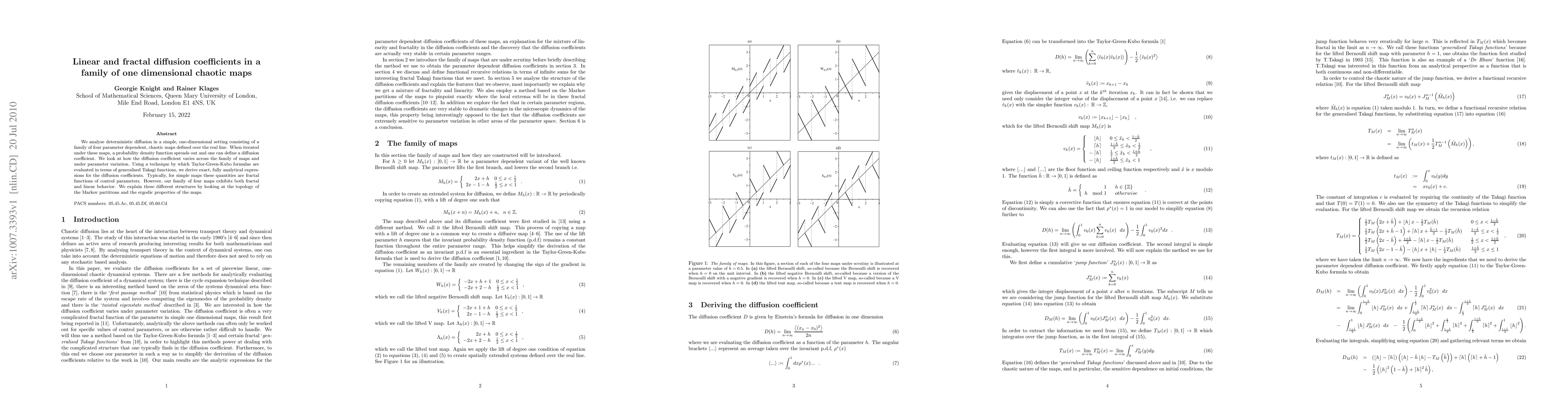 This paper explores deterministic diffusion in one-dimensional chaotic maps, deriving exact analytical expressions for diffusion coefficients using generalised Takagi functions. It reveals both fractal and linear diffusion behaviors in a family of four parameter-dependent maps, explained through the maps' topology and ergodic properties.