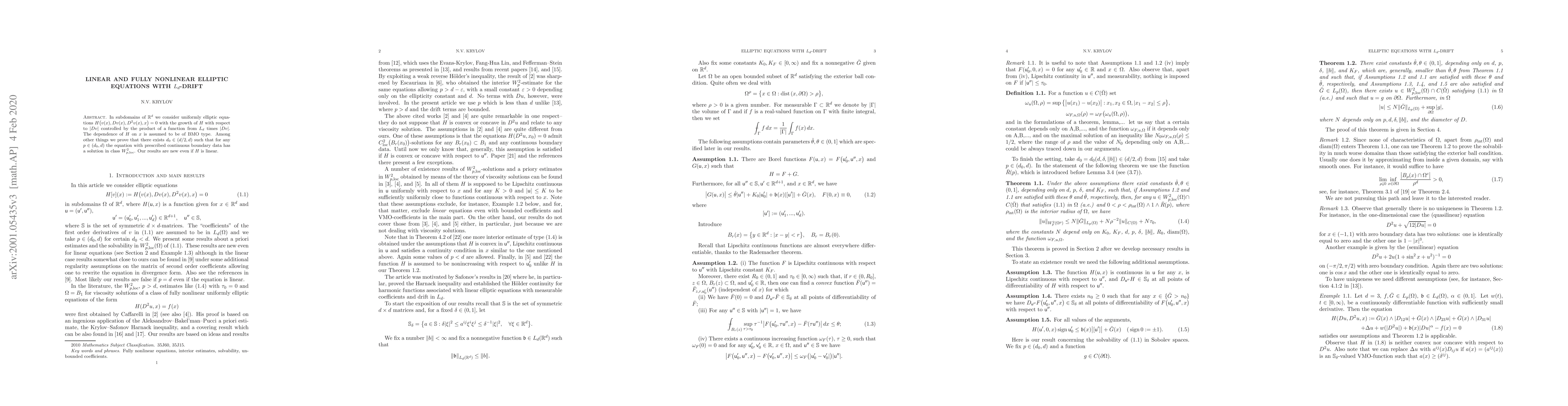 This research paper proves that certain elliptic equations with $L_{d}$-drift have solutions in a specific class of functions for subdomains in $ abla^{d}$. The results hold true even when the drift term is linear.
