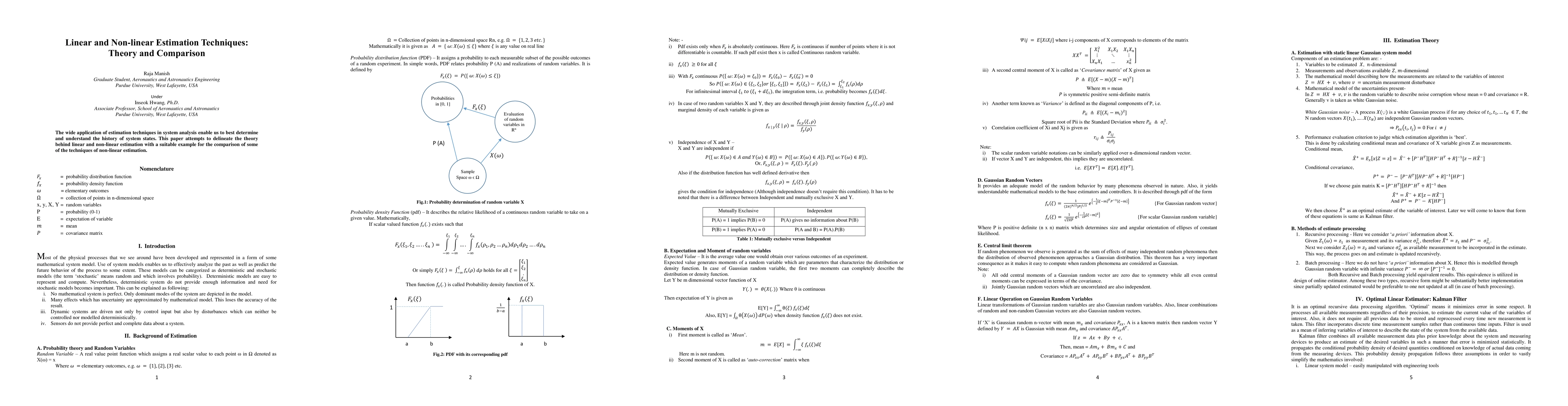 The wide application of estimation techniques in system analysis enable us to best determine and understand the history of system states. This paper attempts to delineate the theory behind linear and non-linear estimation with a suitable example for the comparison of some of the techniques of non-linear estimation.
