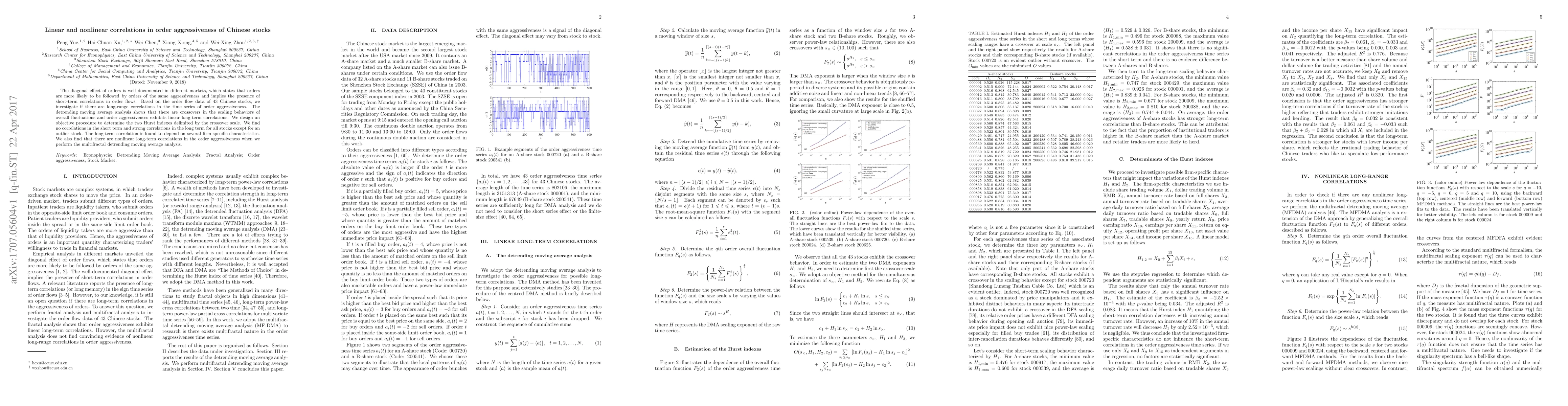 This study analyzes Chinese stock order data, discovering linear long-term correlations in order aggressiveness via detrending moving average analysis. Nonlinear long-term correlations are also identified using multifractal detrending moving average analysis, with correlations' strength linked to firm-specific characteristics.