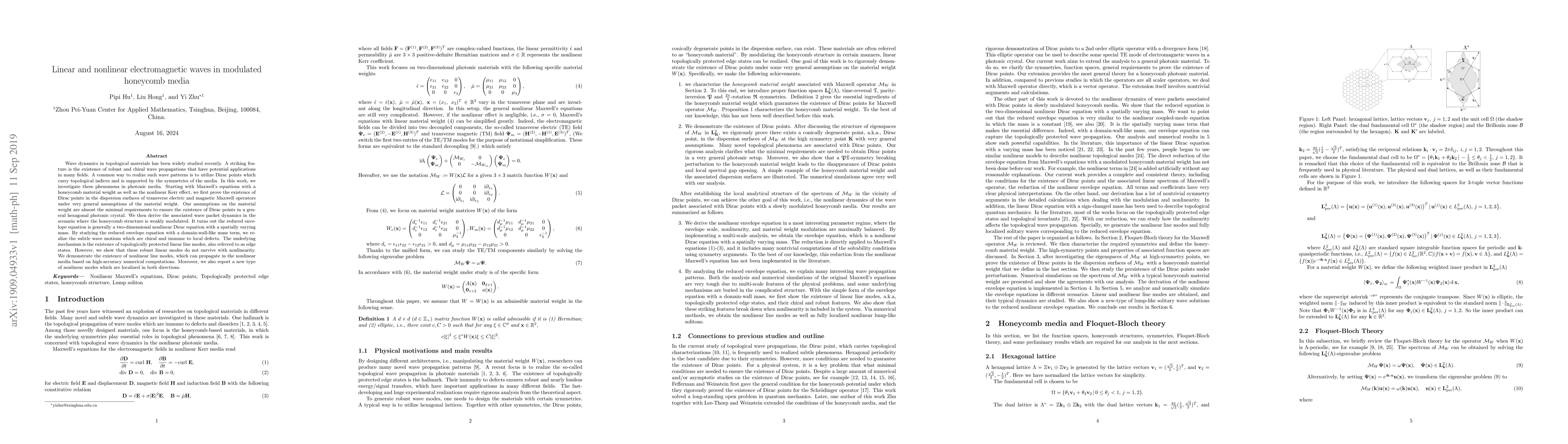 Researchers investigate electromagnetic waves in modulated honeycomb media, discovering nonlinear wave patterns that can propagate with high accuracy and exhibit unique properties.