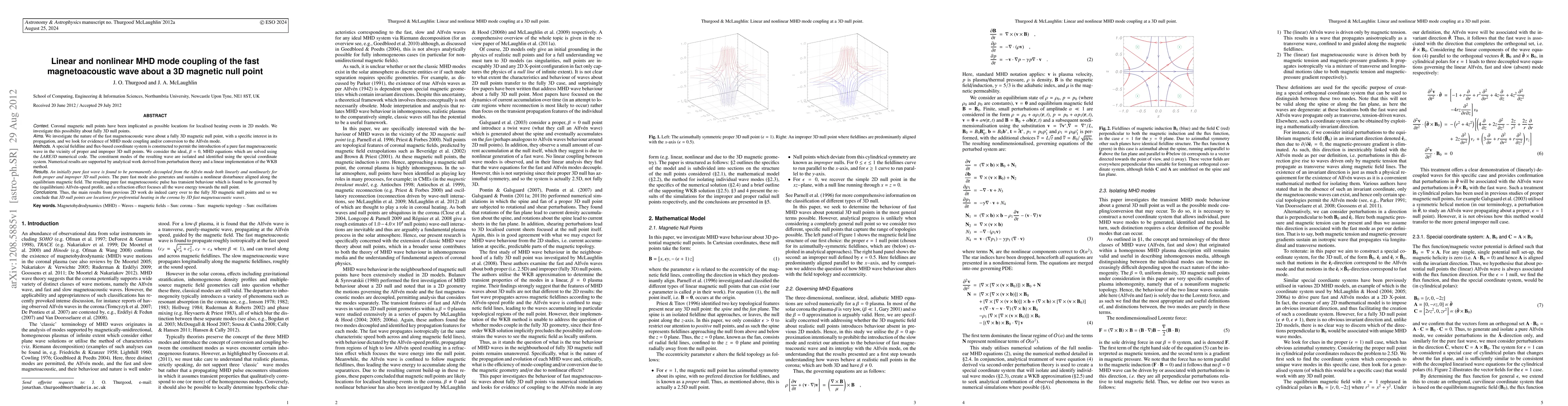 The study reveals that fast magnetoacoustic waves around 3D magnetic null points remain permanently decoupled from Alfv\'en modes, both linearly and nonlinearly, and generate transient nonlinear disturbances focused towards the null point. This extends findings from 2D models to 3D null geometries.